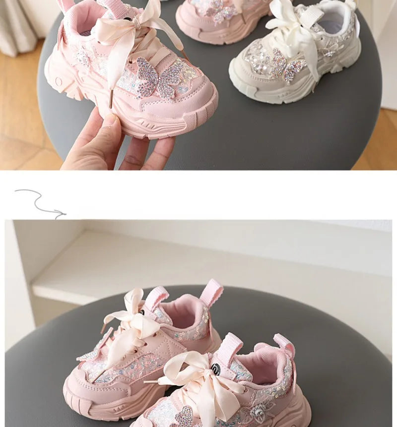 1-6Y New Girls' Sports Shoes Anti Slip Soft Sole Sequin Shinny Butterfly Cute Tennis Running Shoes Princess Shoes for Baby Girls kids_shoes