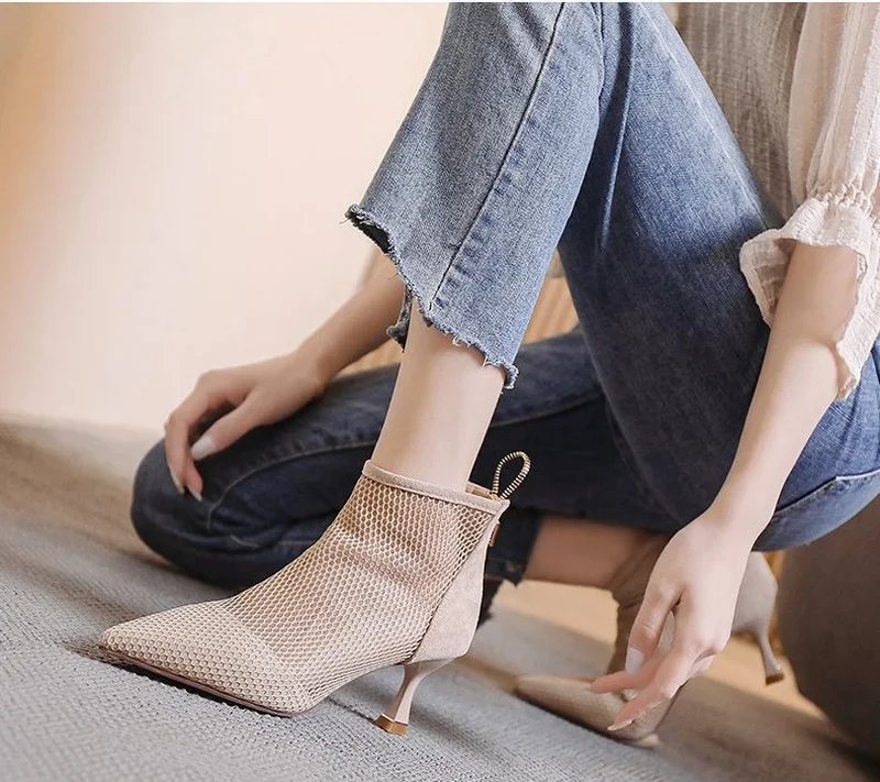 2024 Hot Seller New Women Mesh Sandals Boots,Sexy Summer High Heels,Holllow Out Shoes,Back Zip,Pointed Toe boots_highheel
