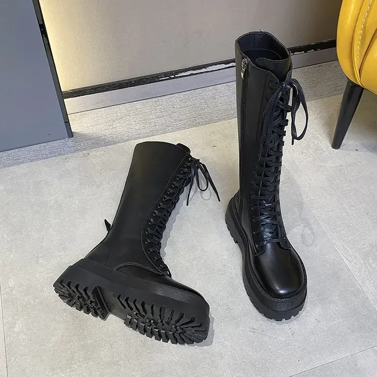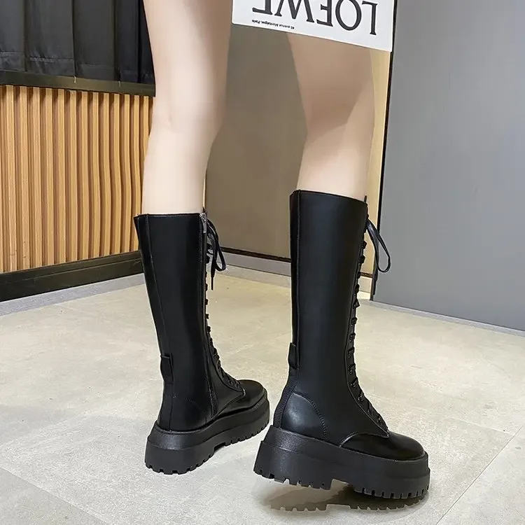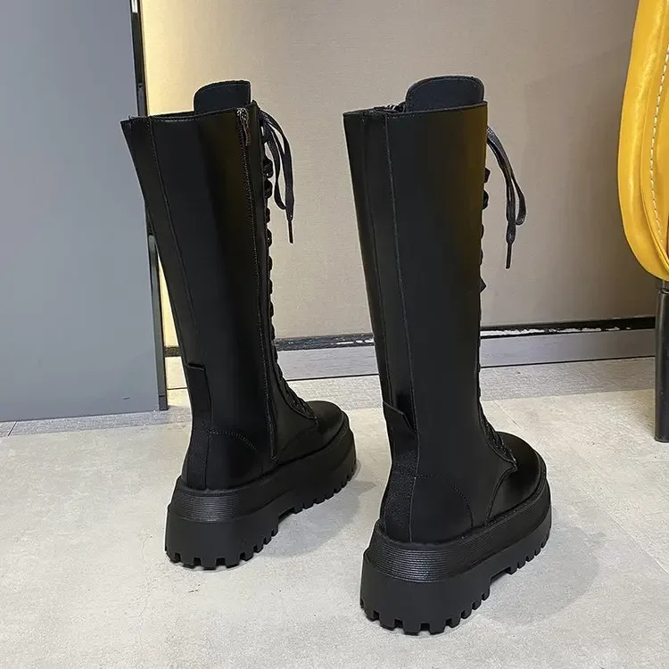 2024 New Thicken Winter Knight Boots Women Knee High Long Square Heel Boots Retro Thick Motorcycle Boots Black White Botas Mujer boots_platform