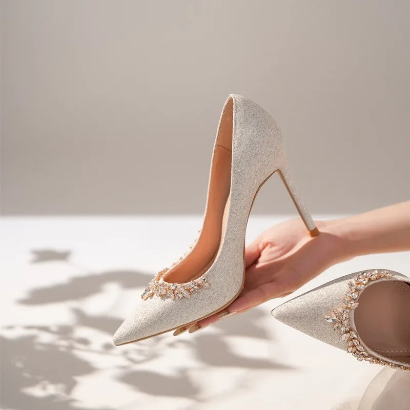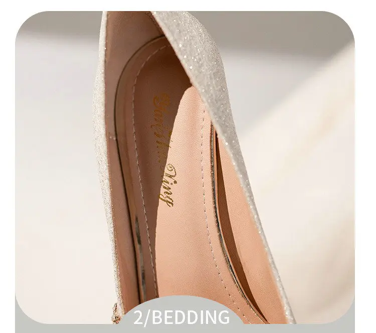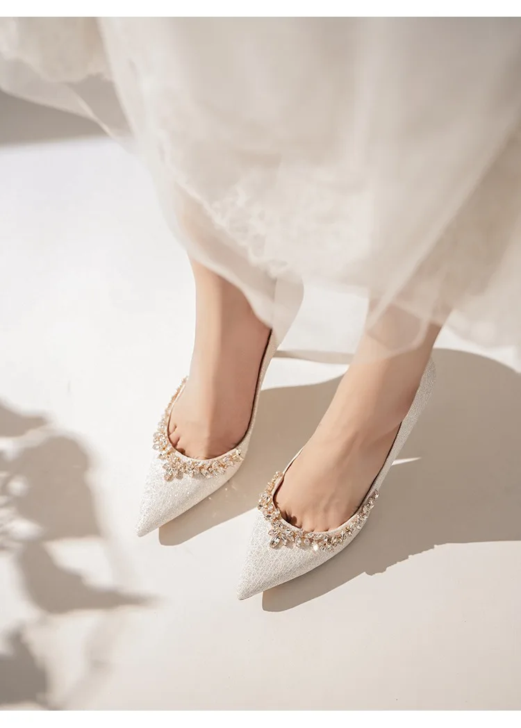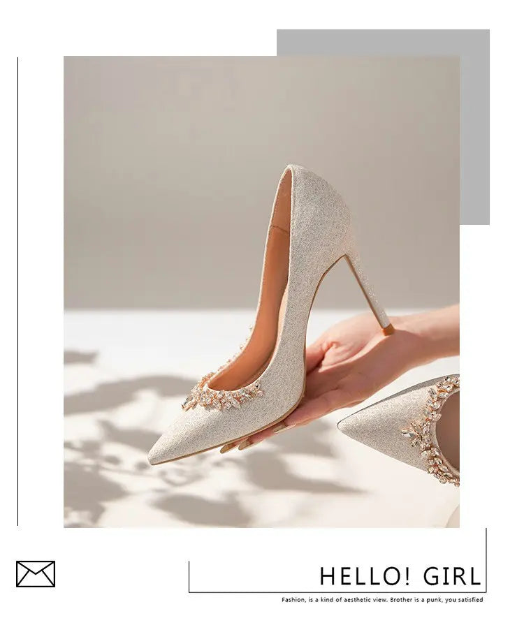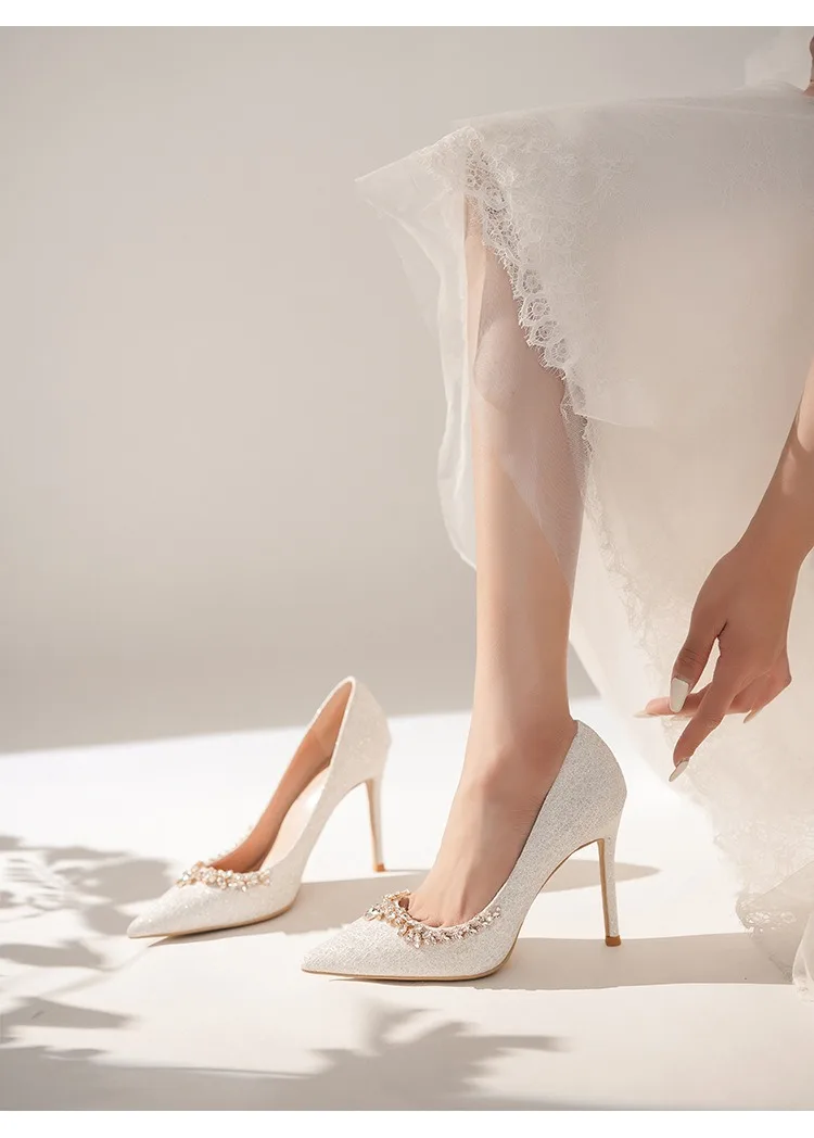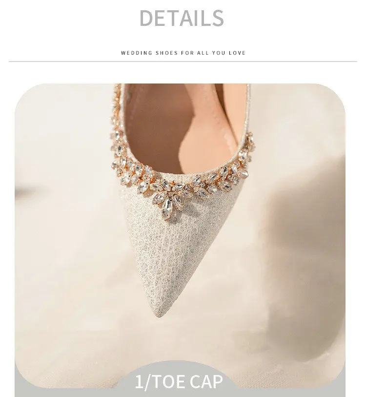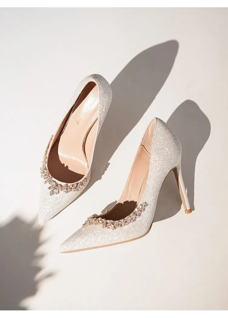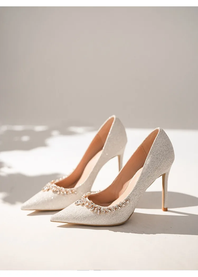 2025 New French Stiletto Heels Pointy Head Shallow Mouth Shoes Rhinodiamond-Edged Korean Version White Crystal Wedding Pumps heels_stiletto