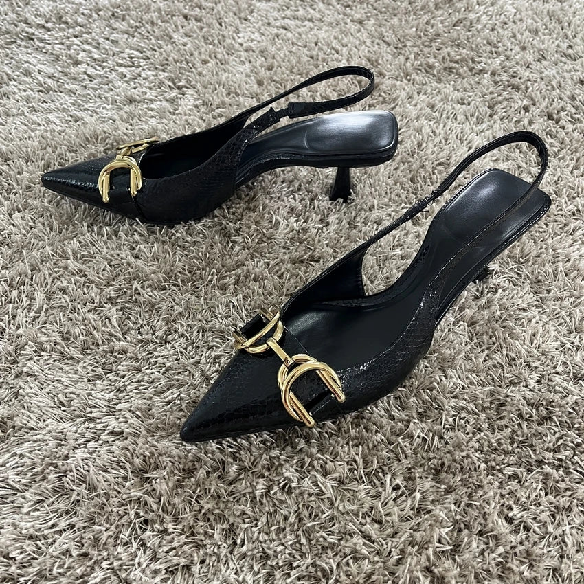 2025 Shoes Black Leather Shoes Woman Pumps Slingbacks Pointed Toe High Heels Stiletto Sexy Party Shoes Women Heels Plus Size 42 heels_stiletto