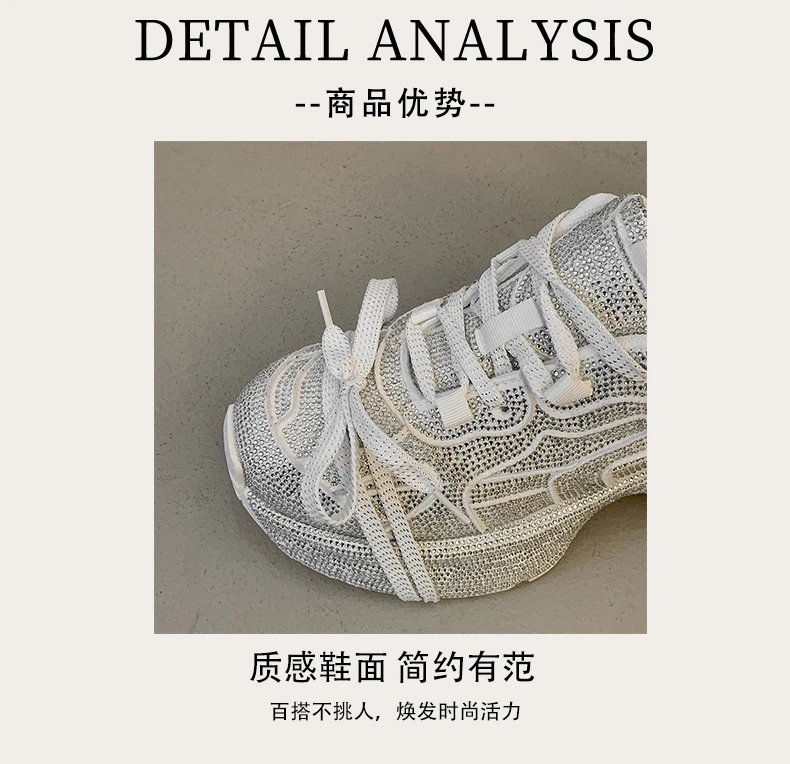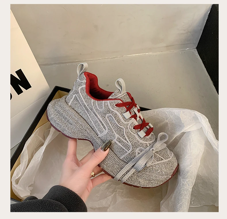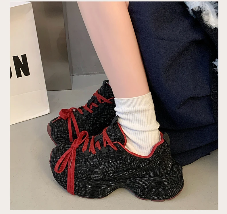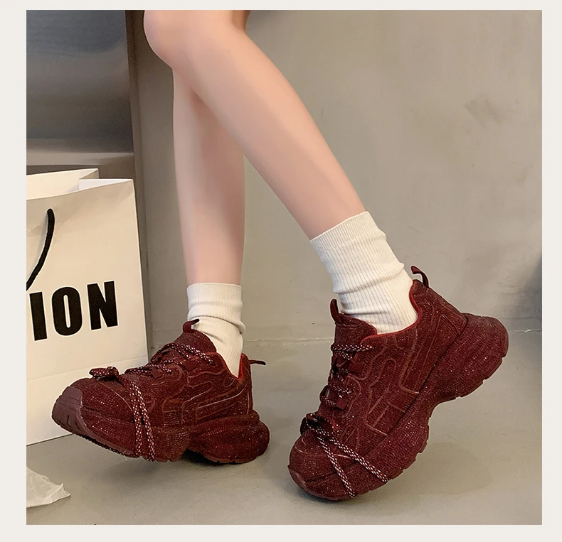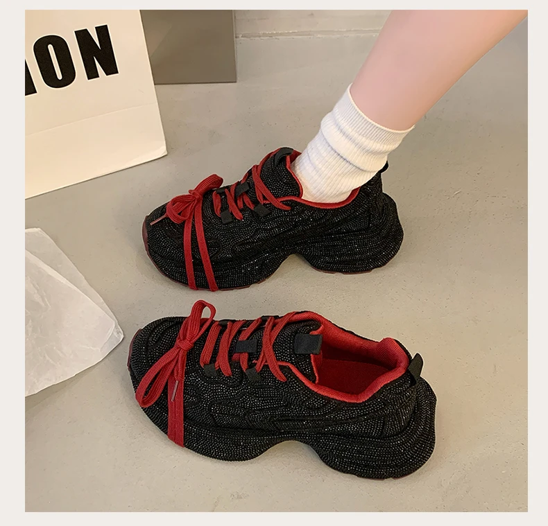 2025 Spring and Autumn New Women's Rhinestones Full of Diamonds Straps Thick-soled Angola Red Niche Sports and Leisure Dad Shoes sneakers_platform