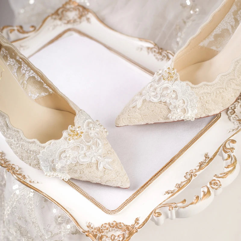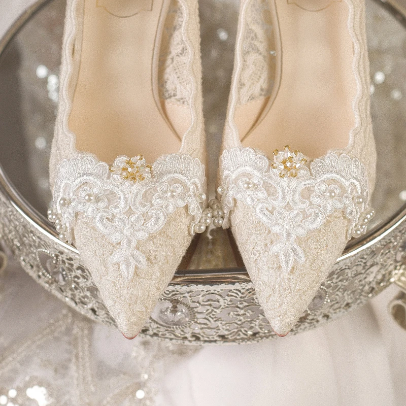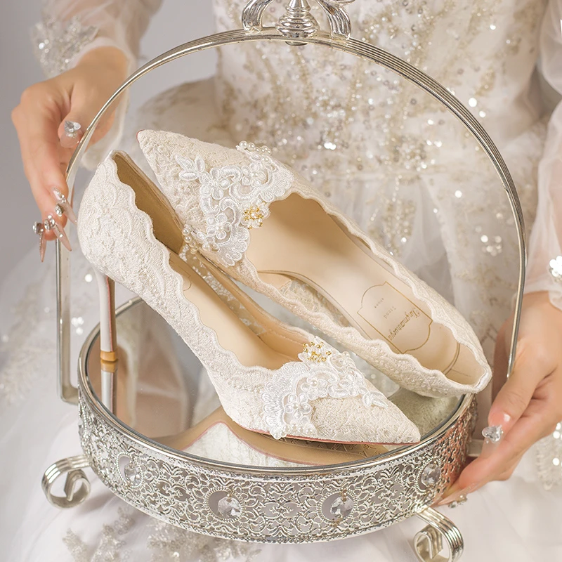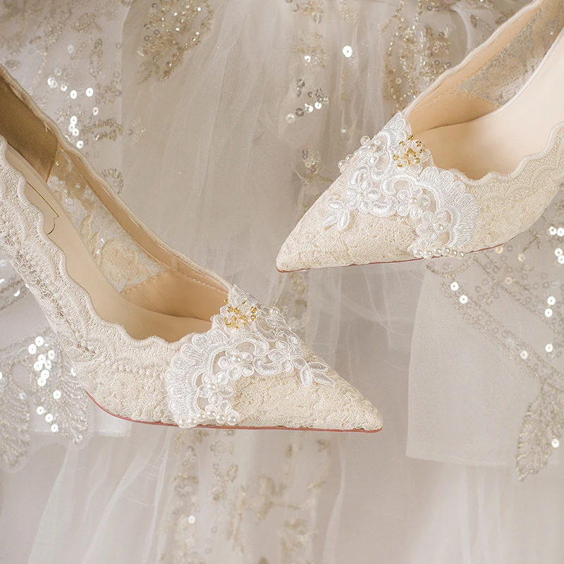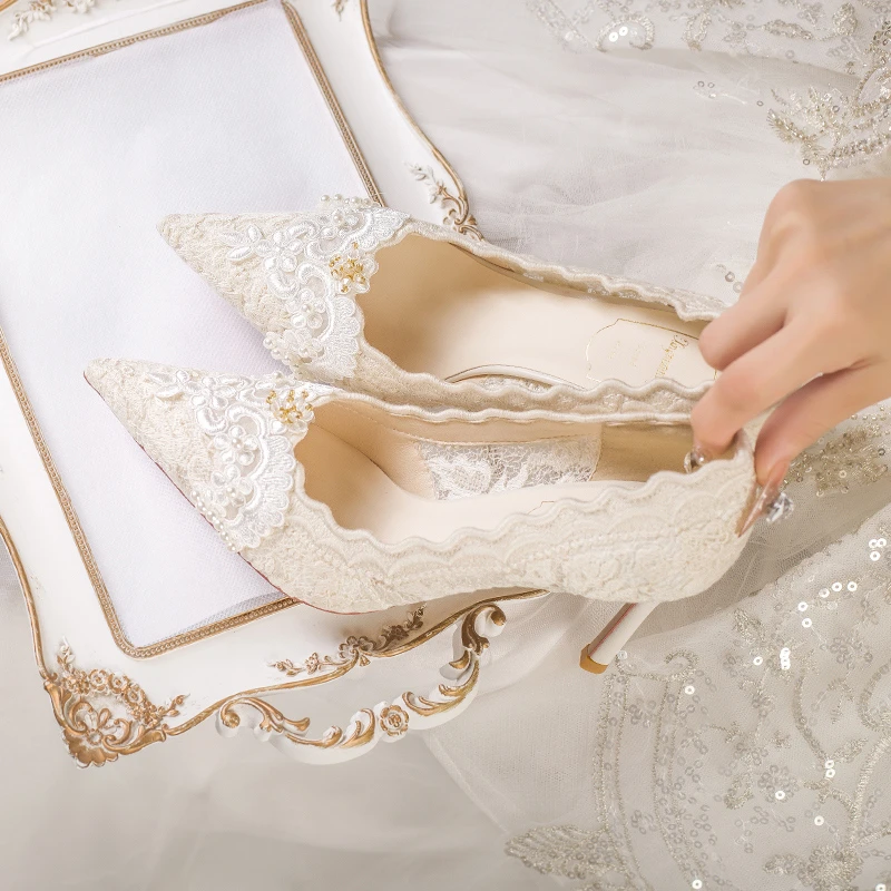 2025 Summer Cutout Women's Mesh Embroidered Pointed Toe Stiletto Heels Lace Shoes heels_stiletto