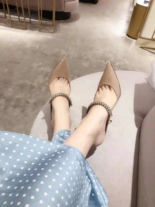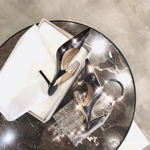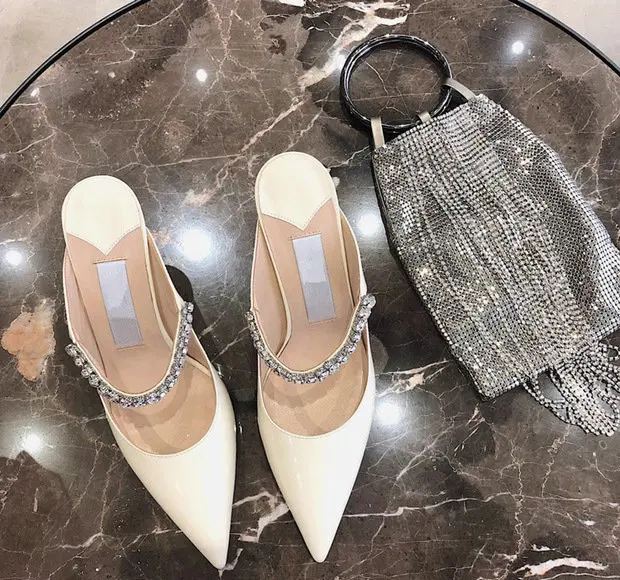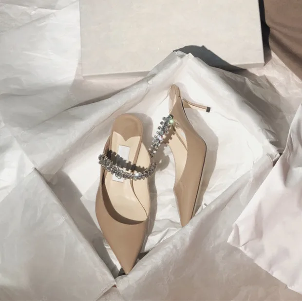 2025 Summer New High-heeled Stiletto Pointed Rhinestone Slippers Women's Outer Wear One-word with Baotou Half Drag Muller Shoes heels_bridal