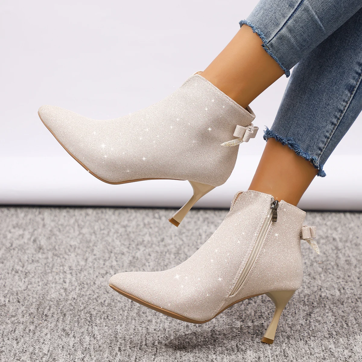 2025 Women's Thin High Heels Boots Autumn New Fashion Zip Shoes Women Bling Sexy Pointed Toe Party Ankle Boots Women Botas Mujer boots_highheel