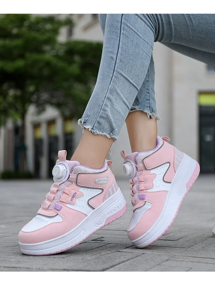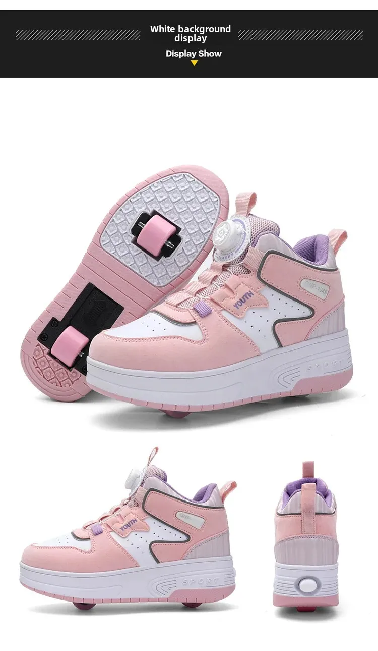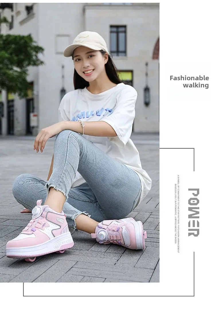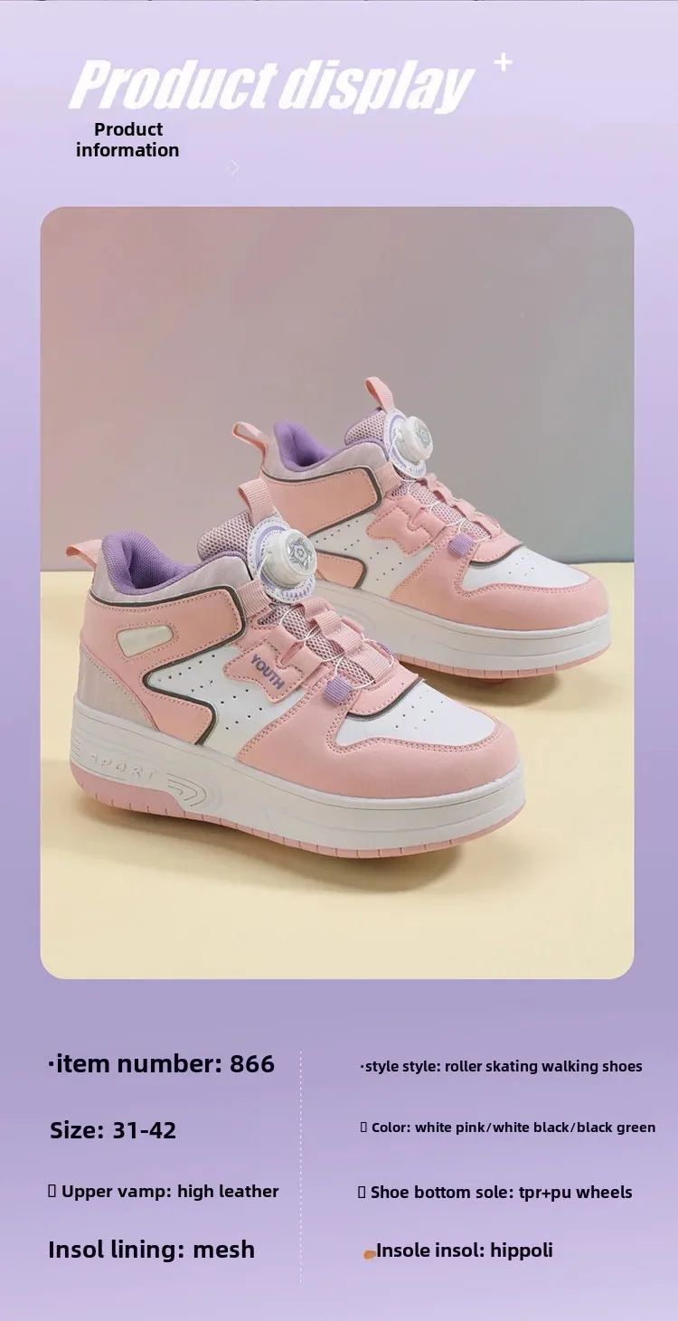 2026 Autumn Winter Popular Children's Roller Skates Men Women's Sport Shoes With Rotating Buckle And Wheels Single Row Skating kids_shoes