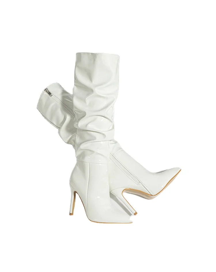 2026 Over the Knee Boots Women Fashion Pointed Black Side Zipper Stiletto Heels Women Shiny Pleated High Heels boots_highheel