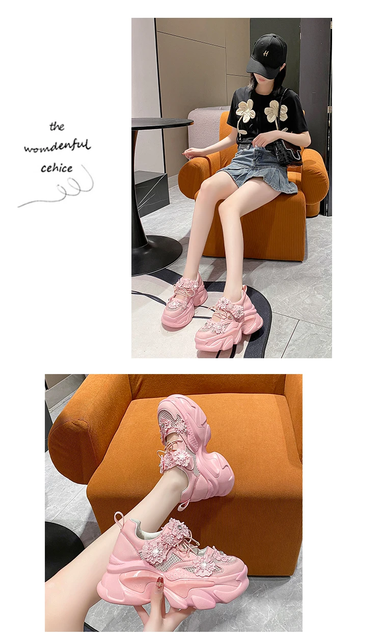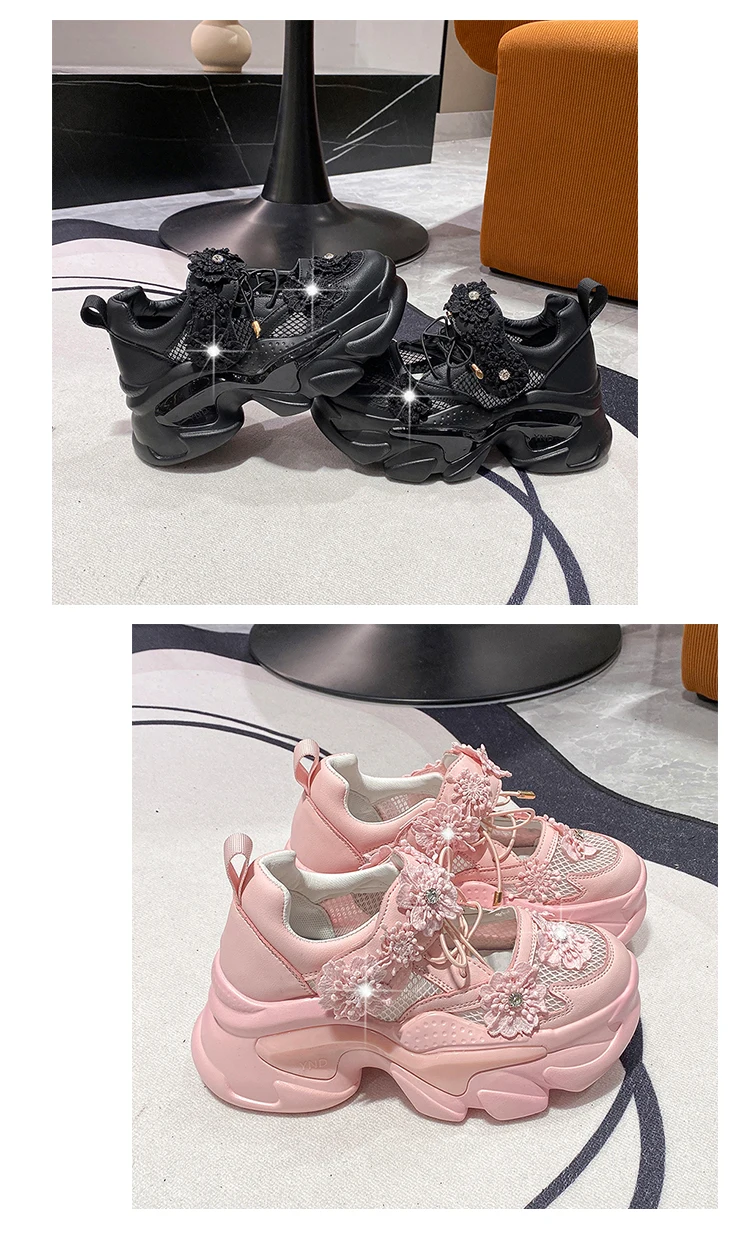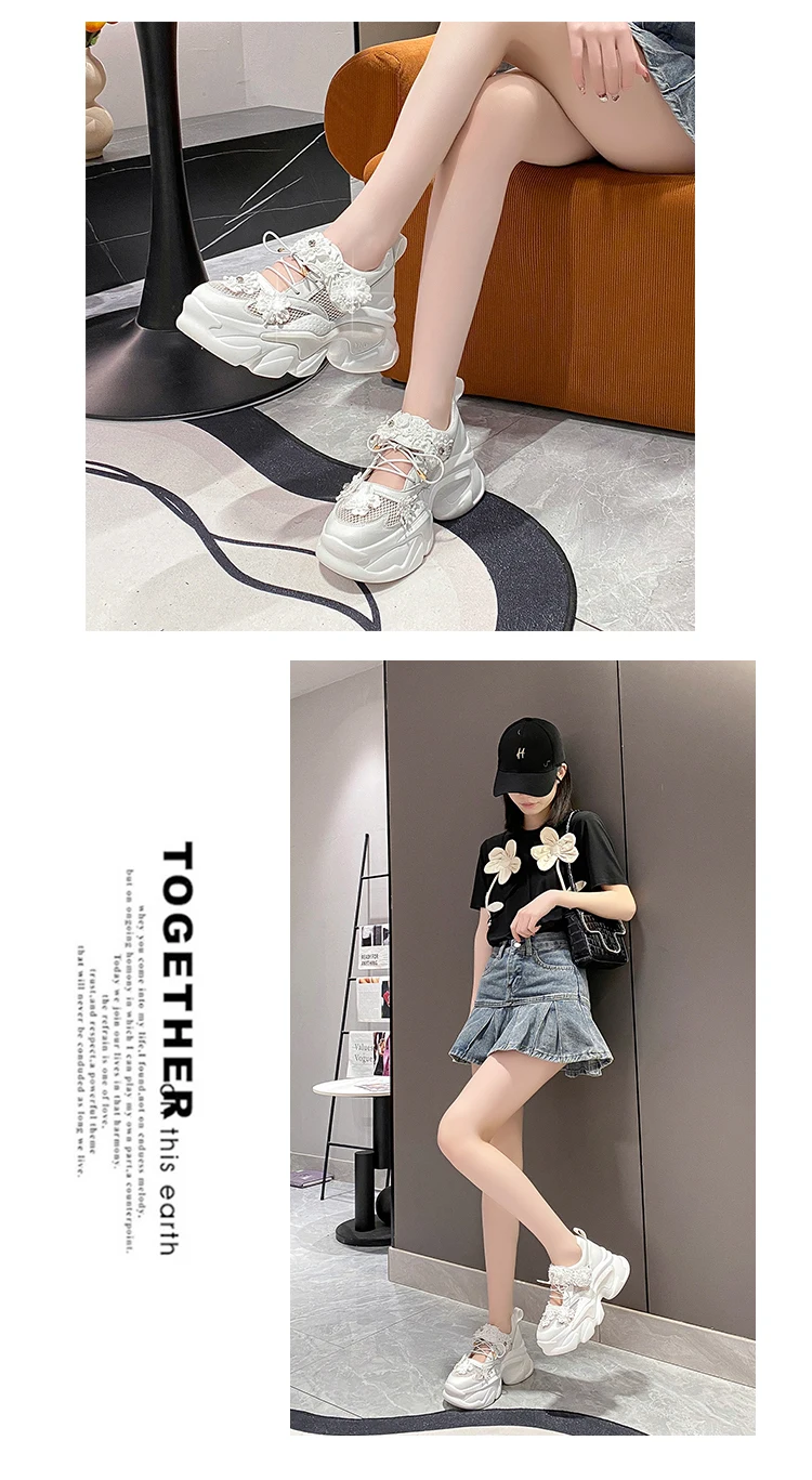 7.5CM Heels Women Thick Bottom Wedge Sneakers Embroider Hollow Out Gladiator Breathable Summer Shoes Woman Bling Chunky Sandals sneakers_platform