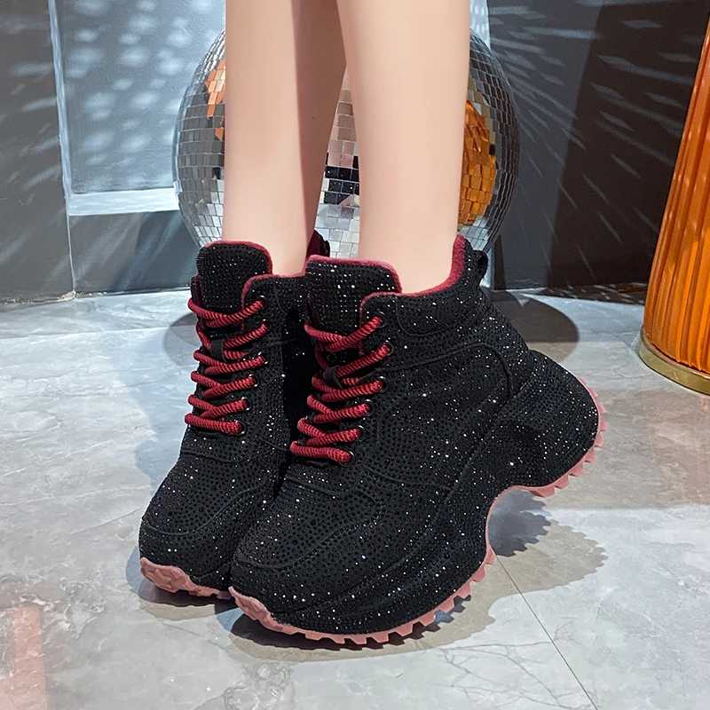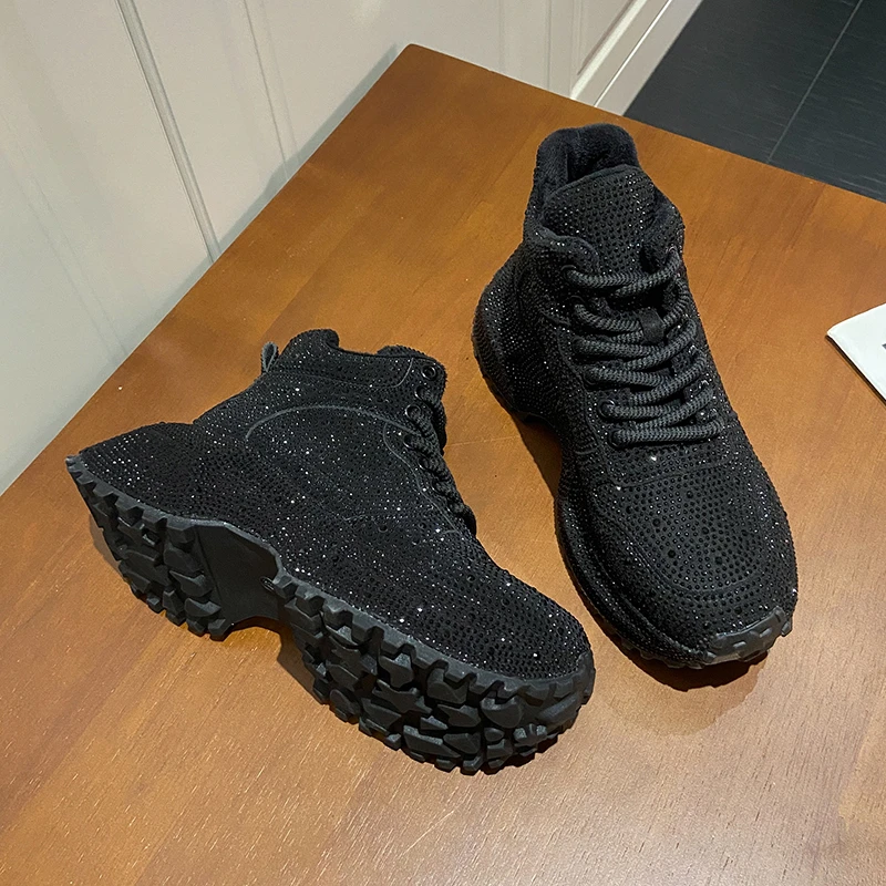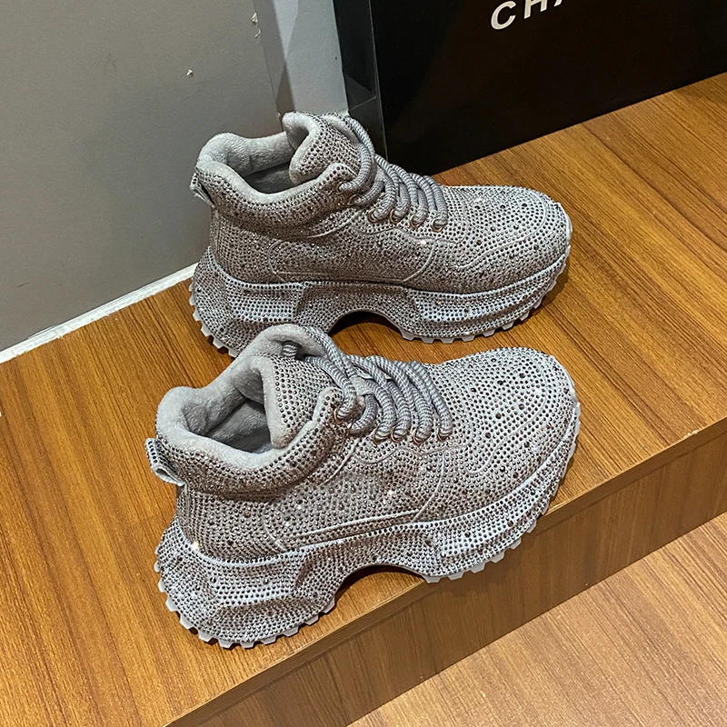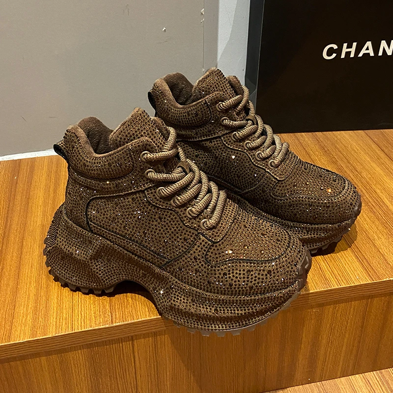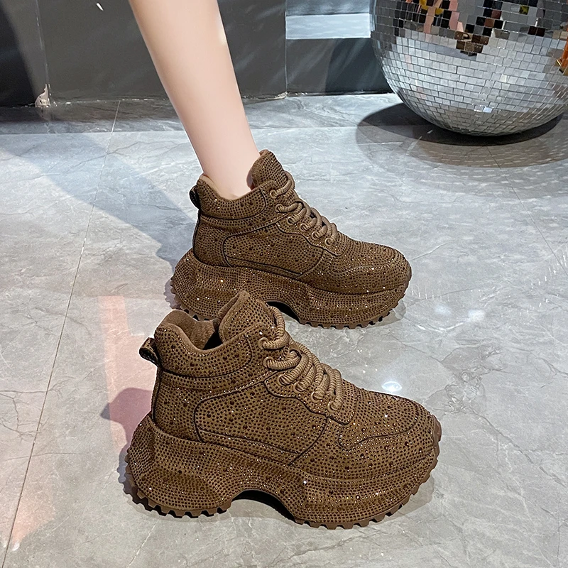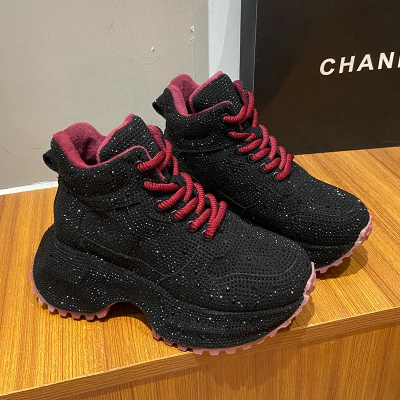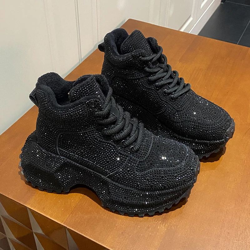 7CM Winter Women Shiny Rhinestones Shoes Casual Plush High Top Sneakers Women Stylish Sport Shoes Lace-Up Platform Luxury sneakers_platform