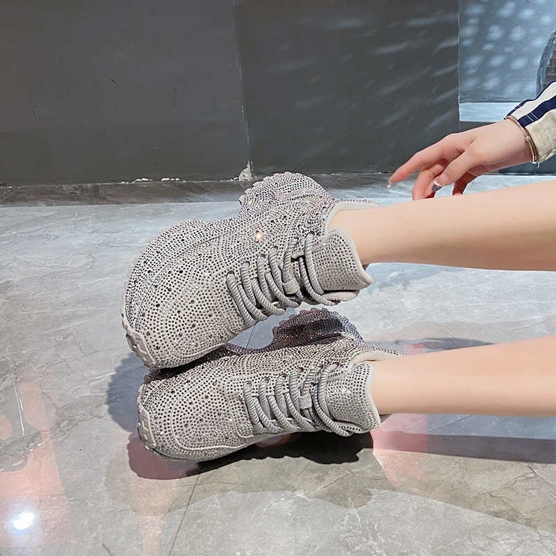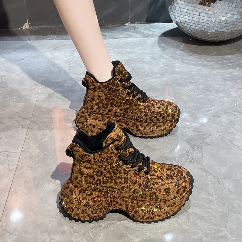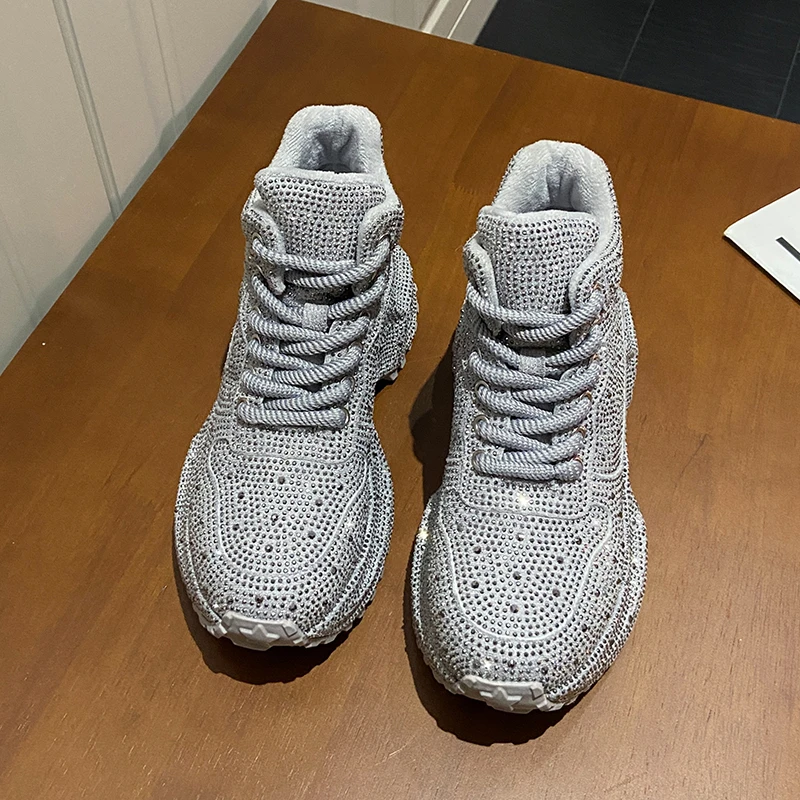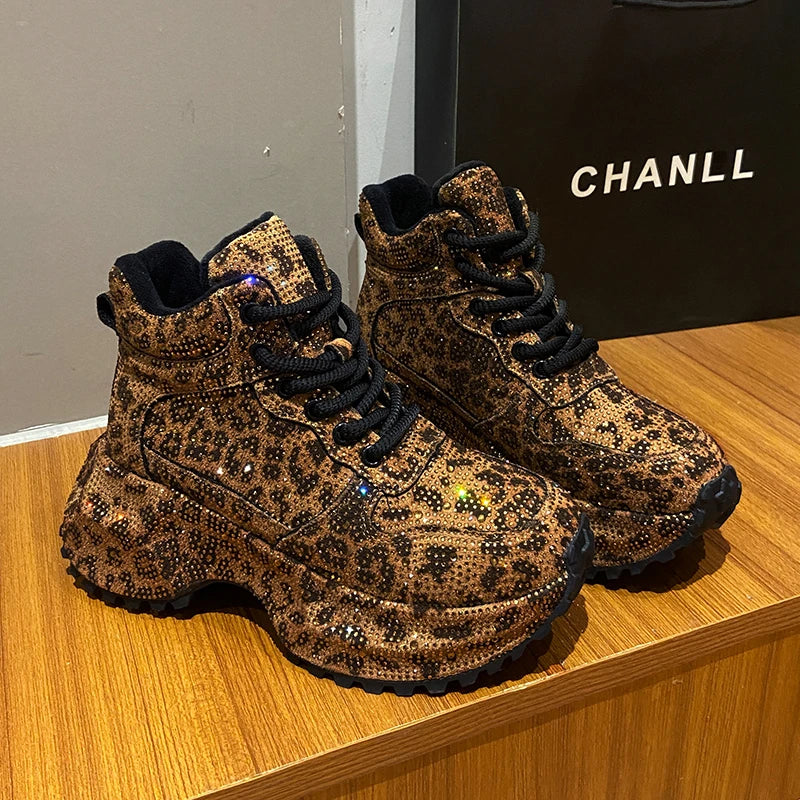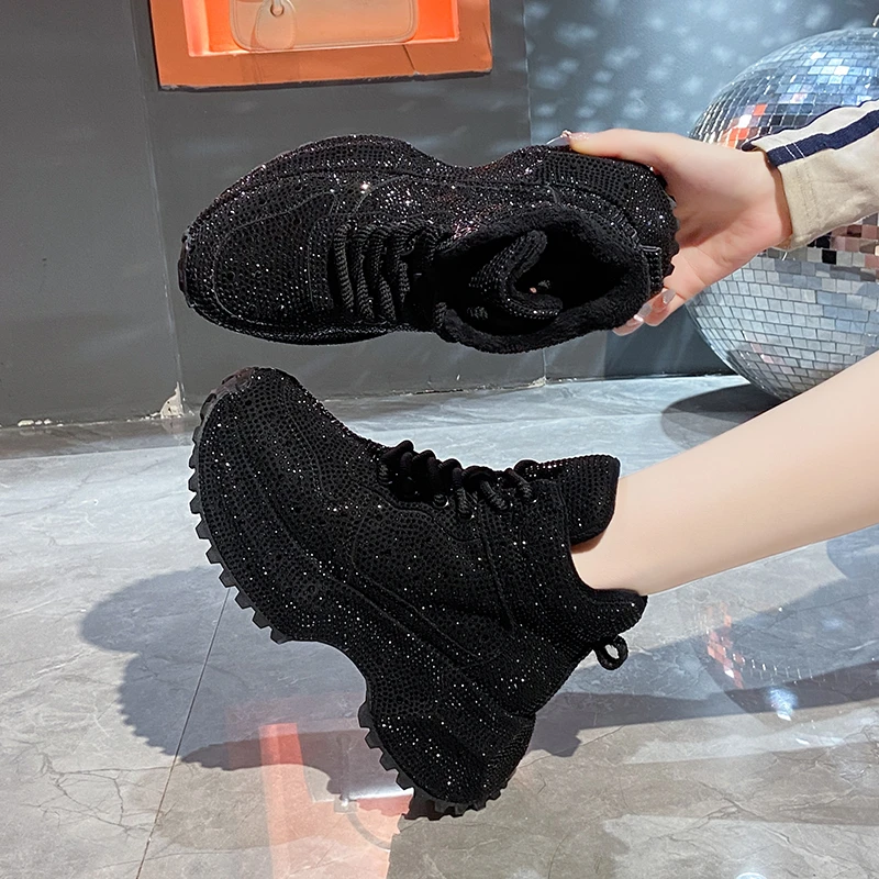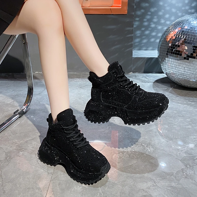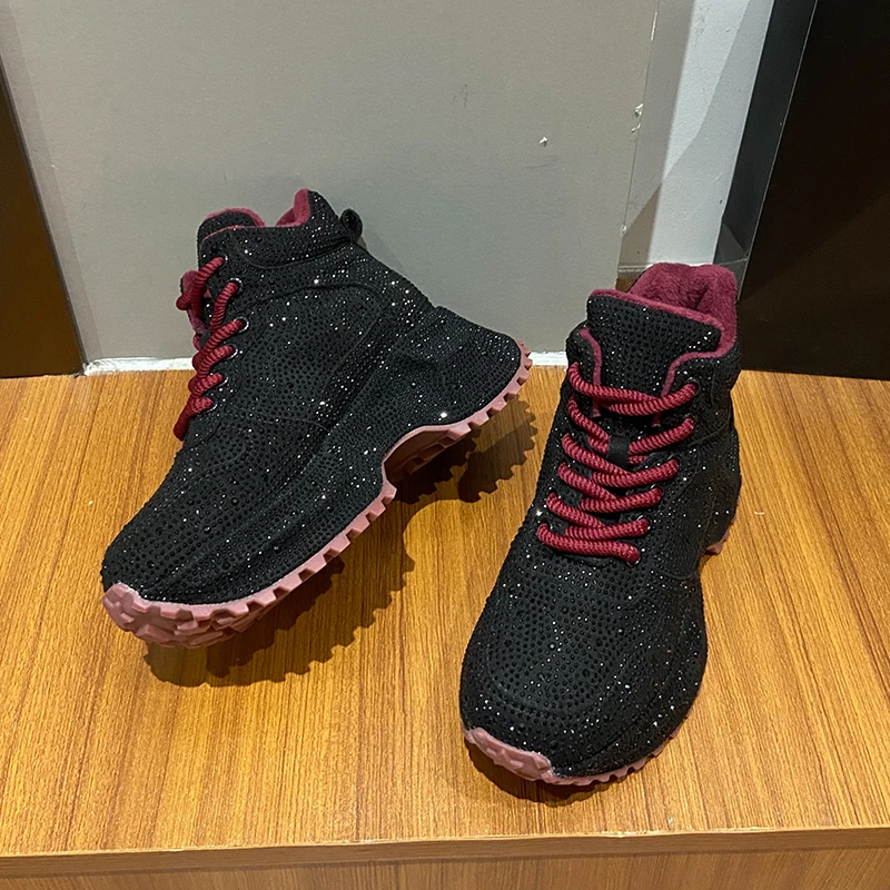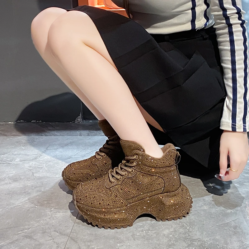 7CM Winter Women Shiny Rhinestones Shoes Casual Plush High Top Sneakers Women Stylish Sport Shoes Lace-Up Platform Luxury sneakers_platform