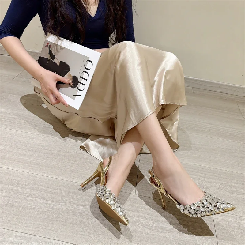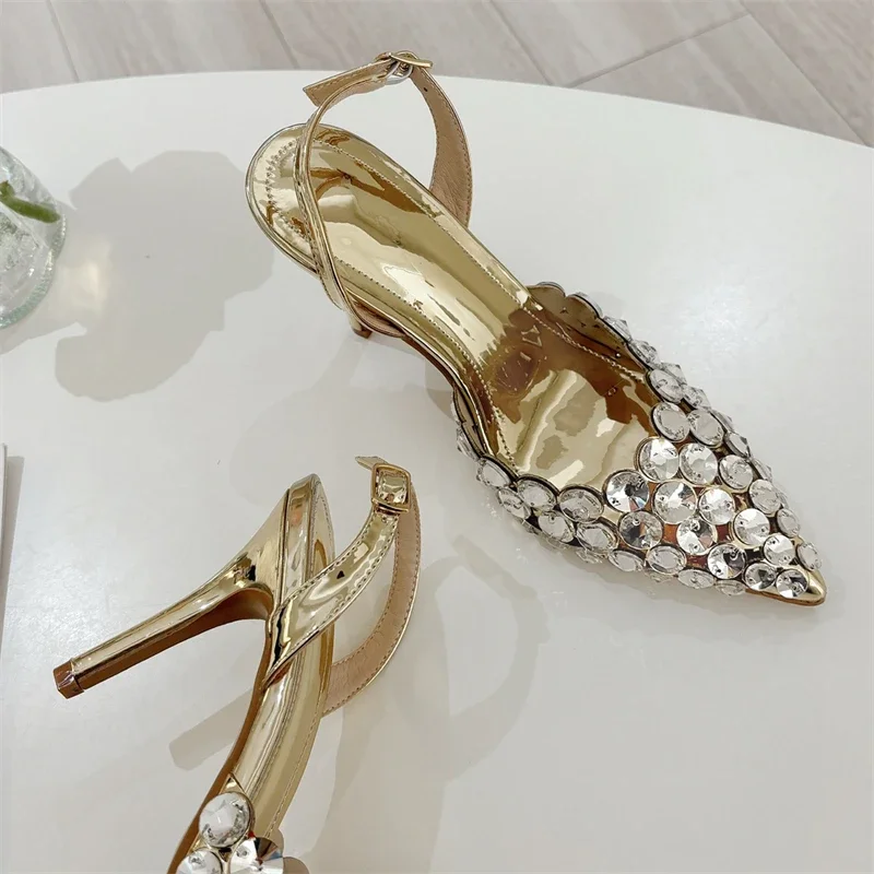 Aneikeh Fashion Stiletto Pumps Summer Silvery Rhinestone Hollow Strap High-heeled Sandals Women Wedding Banquet Shoes heels_stiletto
