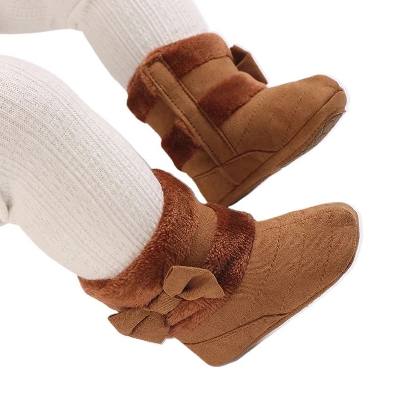 Baby Girls Winter Snow Boots Cute Bowknot Fuzzy Crib Shoes Footwear Infant Warm Infant First Walker Shoes with Non-Skid Soles kids_shoes