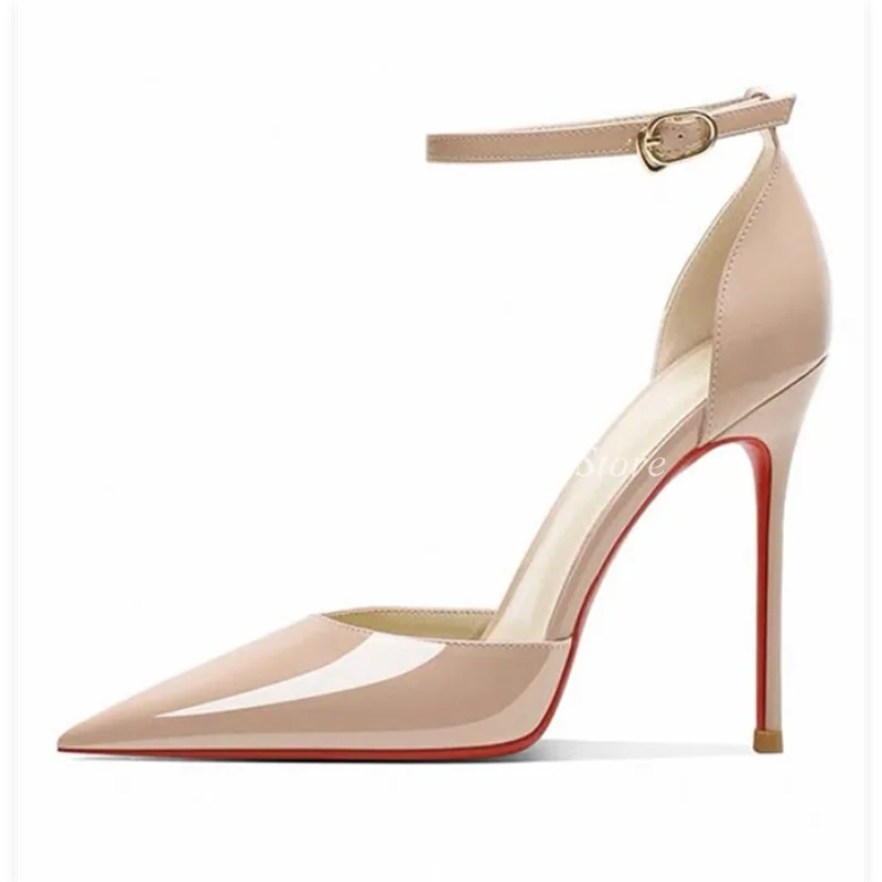 Baby Pink Patent Leather Sexy Ankle Strap Pumps Black/White/Nude Pointed Toe High Heels Good Quality Big Size Party Shoes heels_stiletto