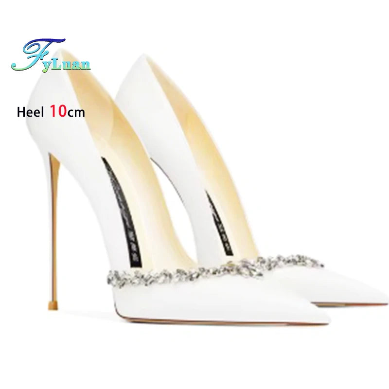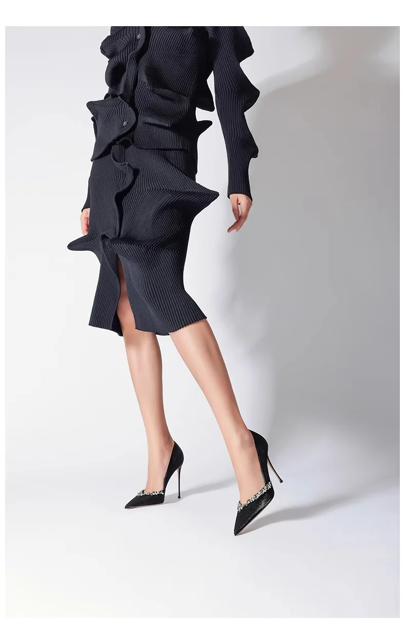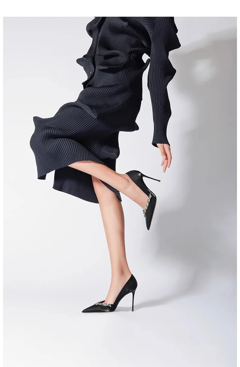 Black High Heels 10cm 8cm 6cm Women's Shoes Thin Heels Microfiber Pointed Head Ladies Pumps Rhinestone Bead Stiletto Party Shoes heels_stiletto