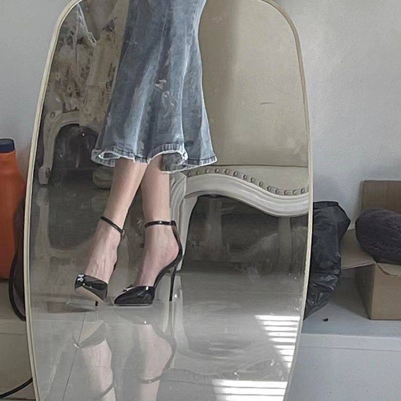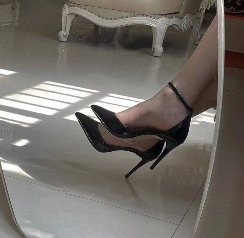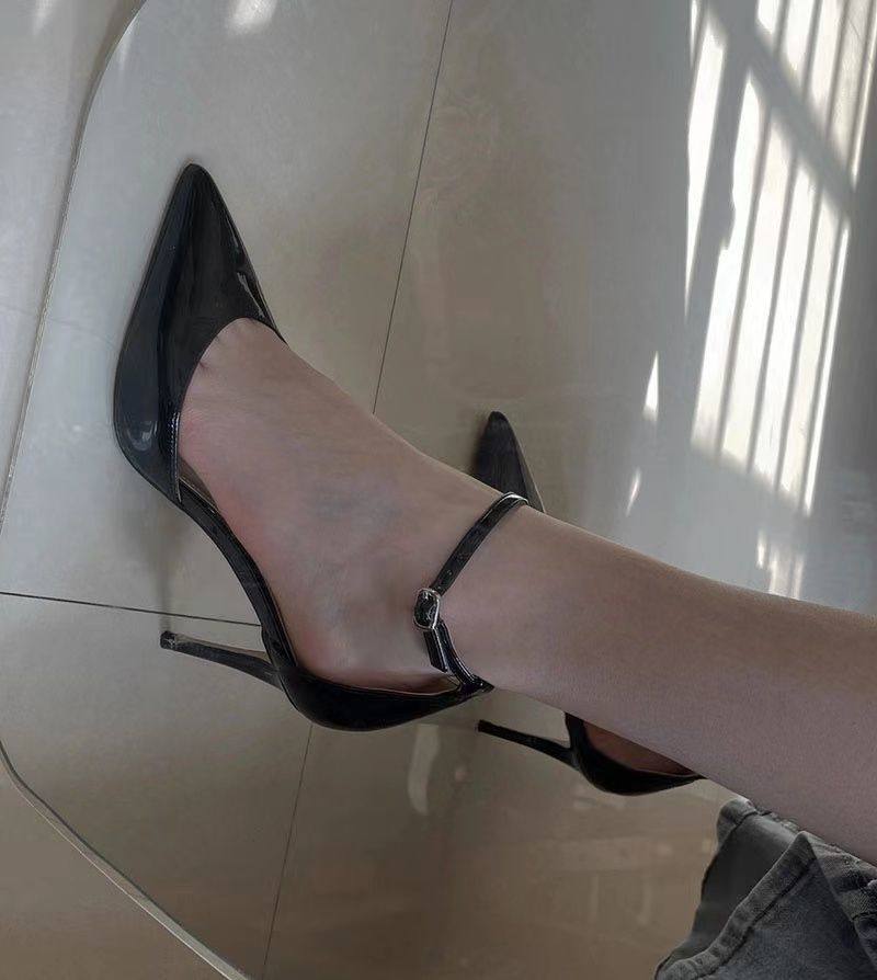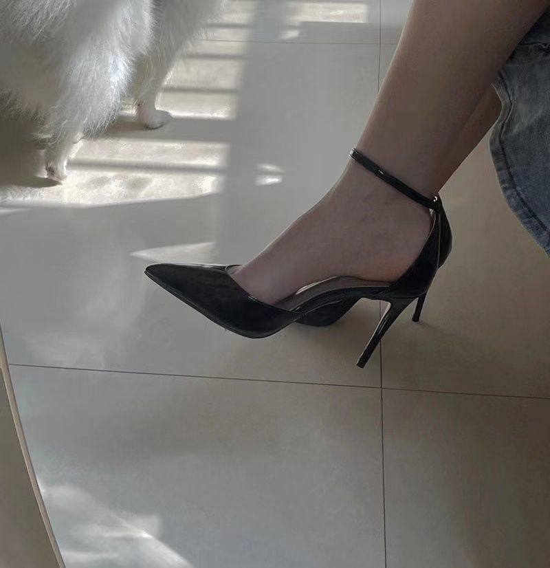 Black Patent Leather Hollow Buckle Strap Super High Heels Sandals Women Pointed Toe Stiletto Sexy 2025 New Arrival Spring & Fall heels_stiletto