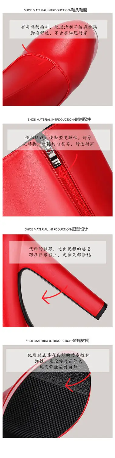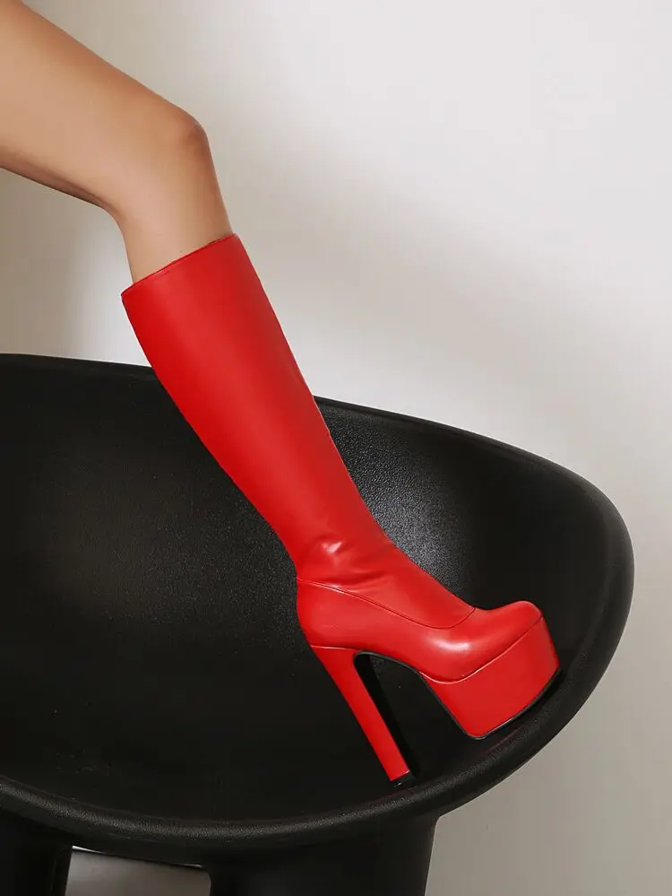 Black Red White Women Knee High Boots Platform Thick High Heel Ladies Calf Boots PU Leather Square Toe Side Zipper Dress Shoes boots_platform