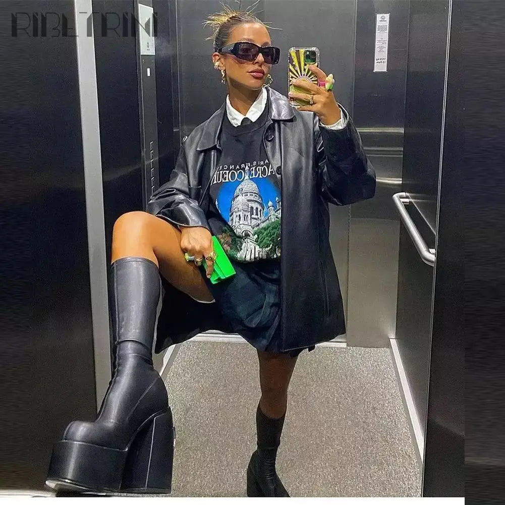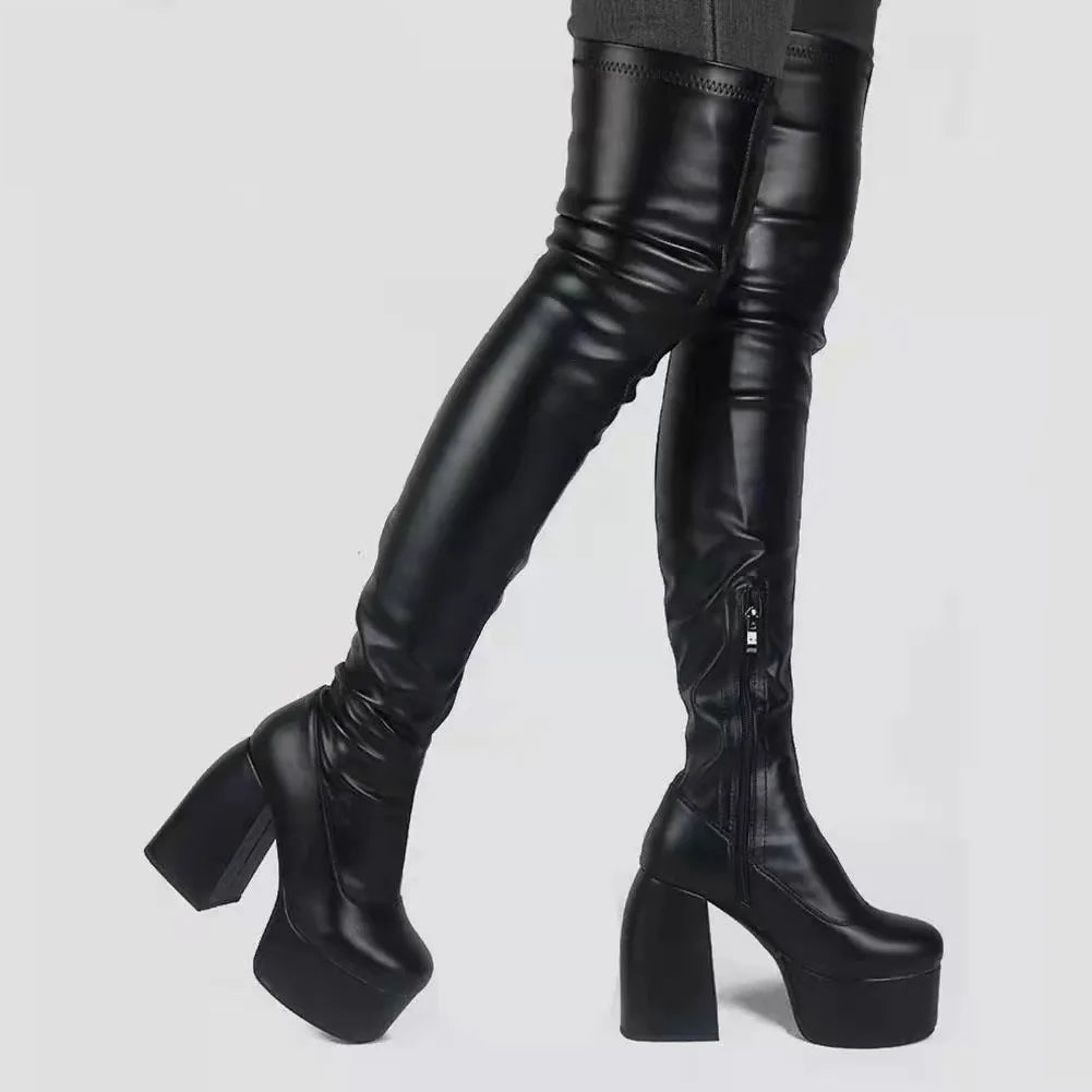 Boots For Woman Knee Shoes On Platform Gothic High Heels Punk Style New Rock Autumn Winter Chunky Pumps Plus Size Women Clothing boots_platform