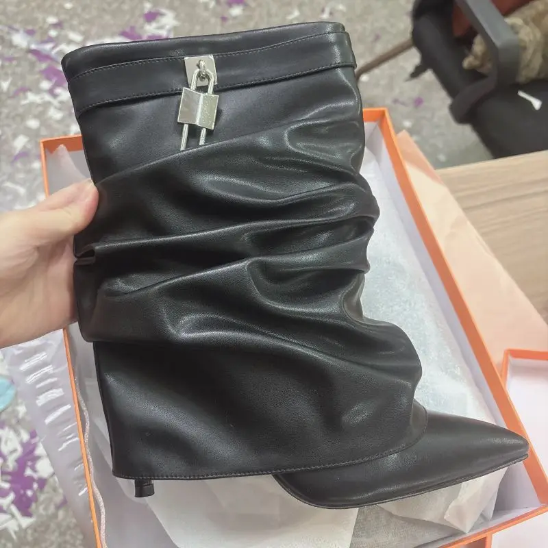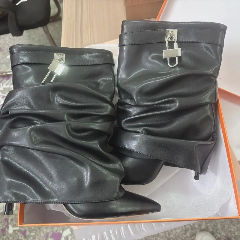 Botines De Mujer Custom Logo Lock Decorated Womens Thin Heel Ankle Boots for Ladies boots_highheel