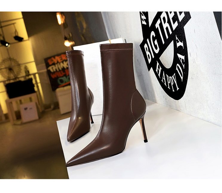 Brown Spring and Autumn Stiletto Retro plus Size Mid Short Boots boots_highheel