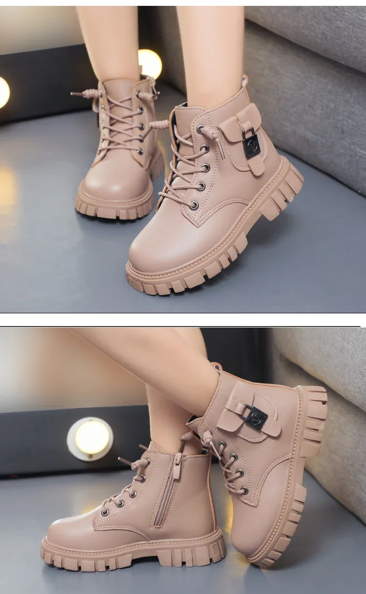 Children Leather Boots Girls Fashion Autumn Winter New Casual Comfortable Short Boots Warm Kids Versatile Anti-slip Cotton Boots