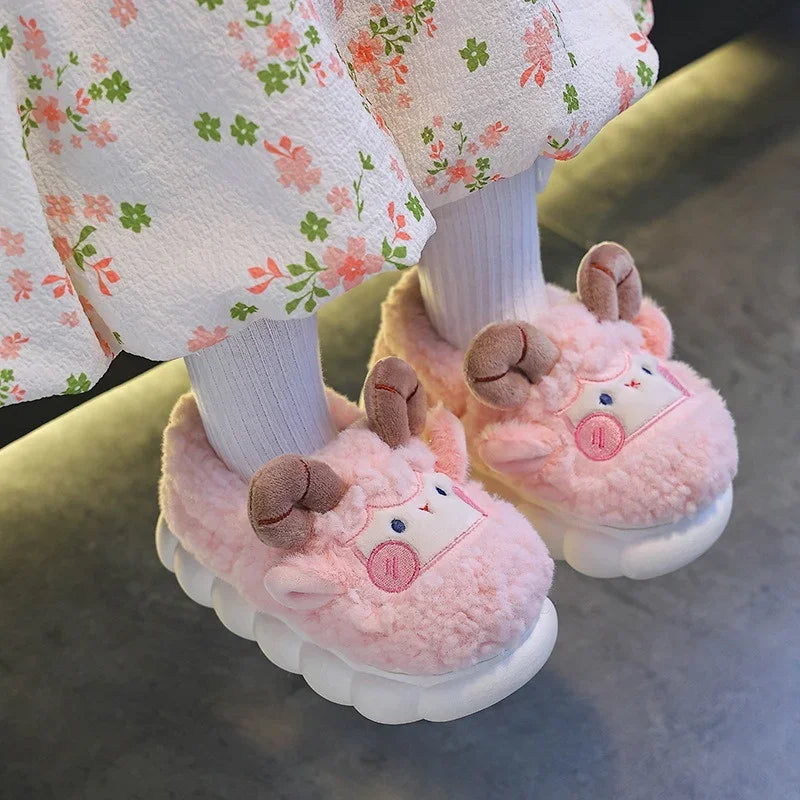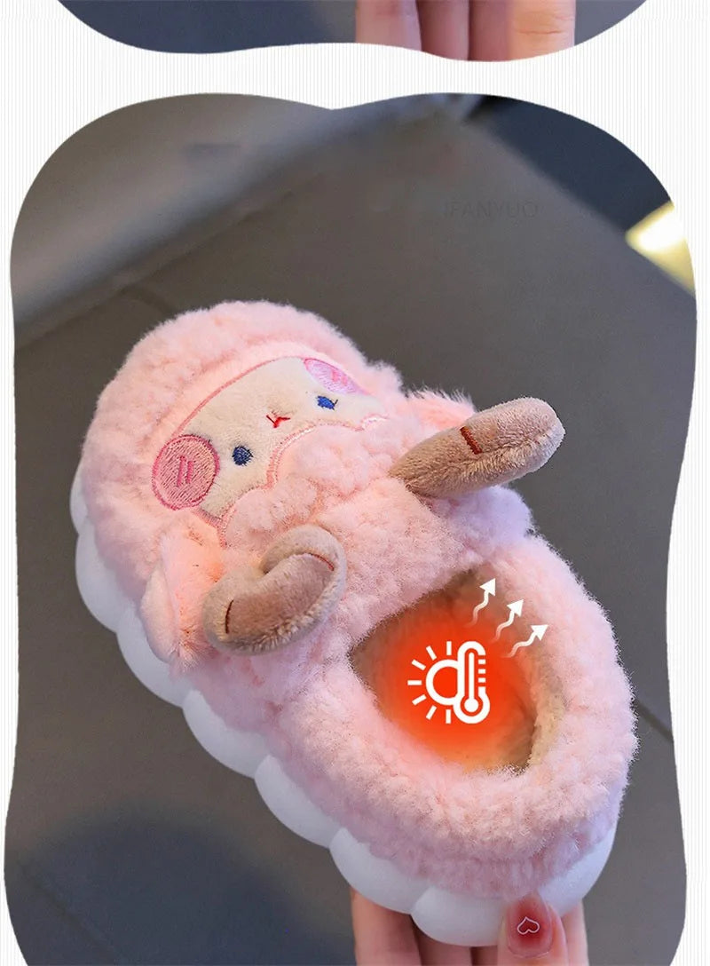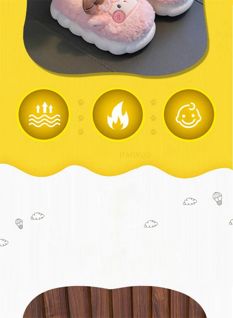 Cute Cartoon Winter Children Sheep Slippers Boys Girls Kid Indoor Anti Slip Warm Home Slippers Soft Comfortable Baby Plush Shoes kids_shoes