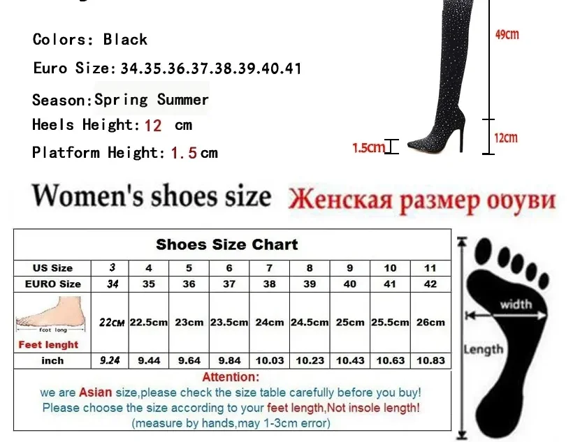 Design Crystal Rhinestone Stretch Fabric Sexy High Heels Sock Over-the-Knee Boots Pointed Toe Pole Dancing Women Shoes boots_highheel