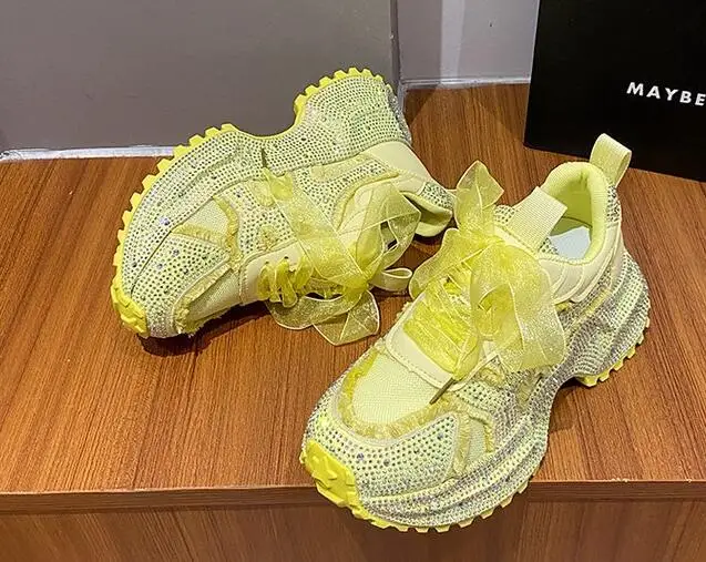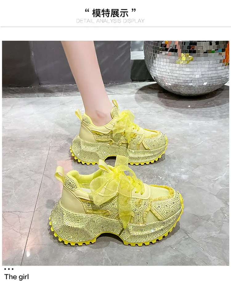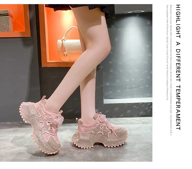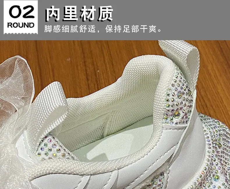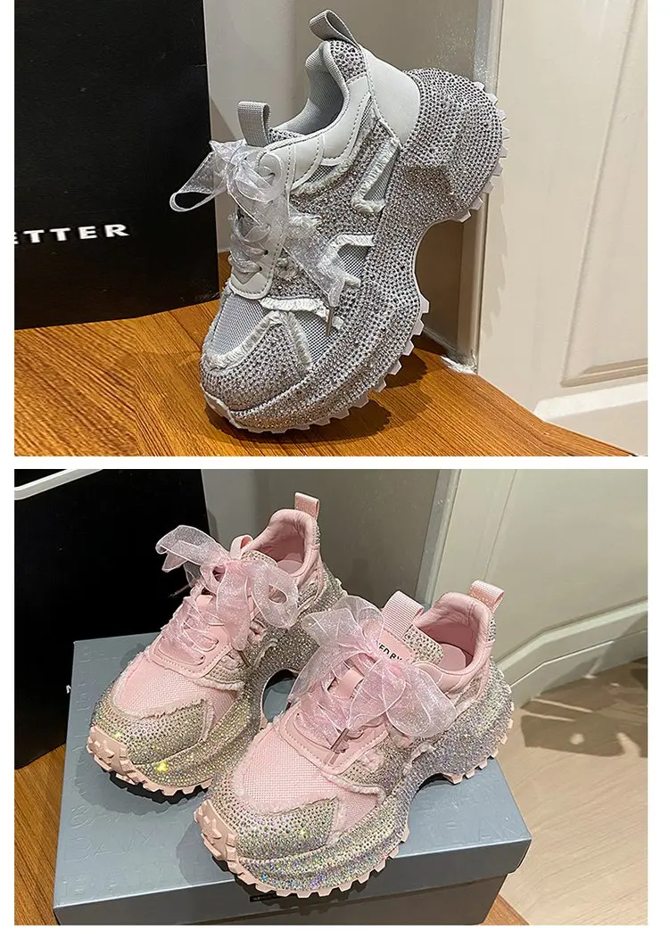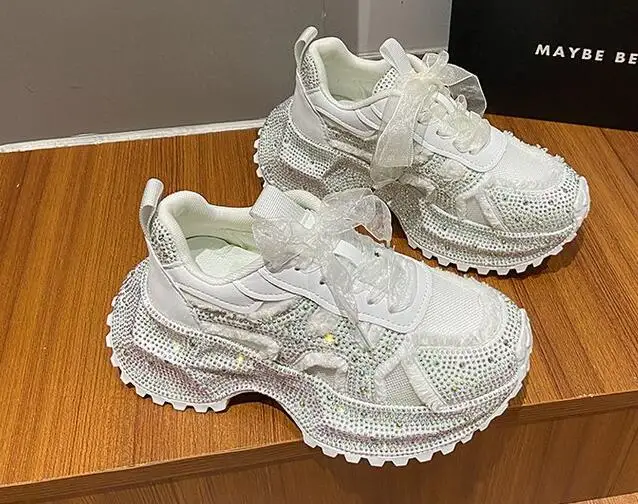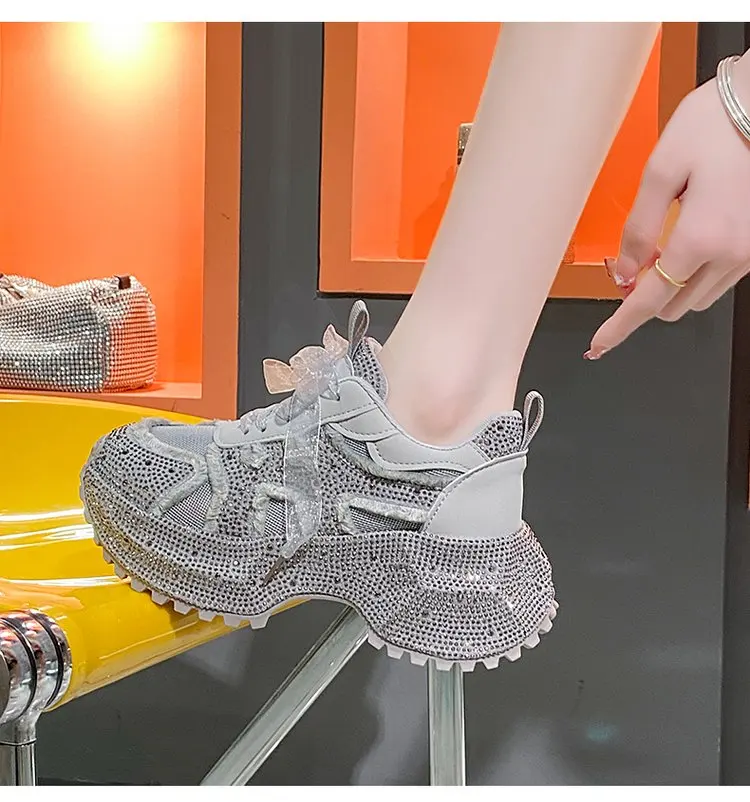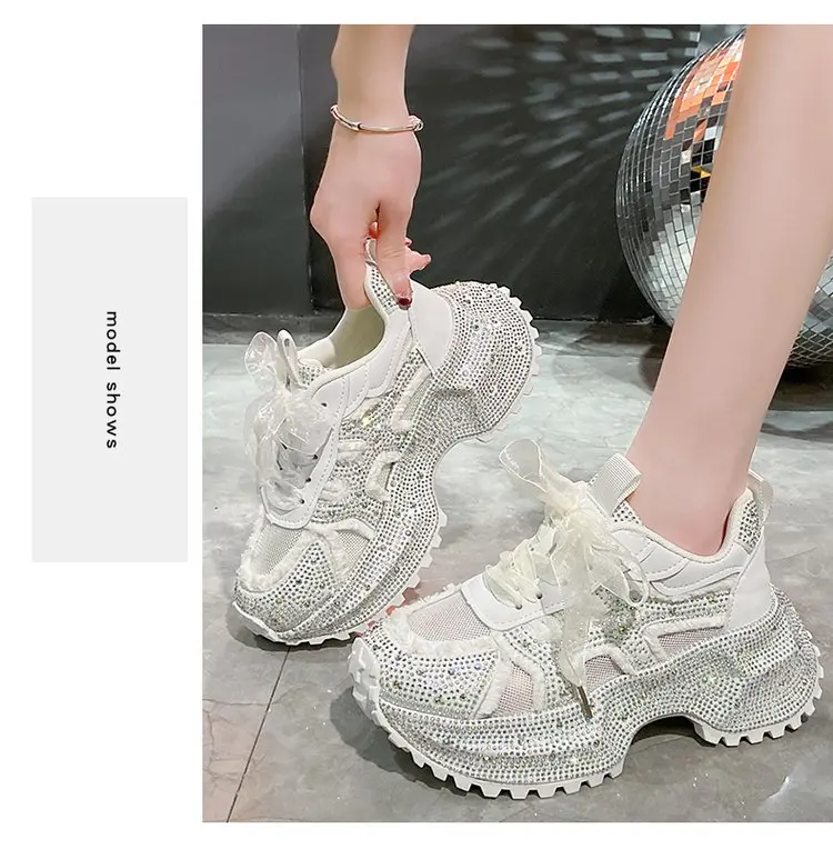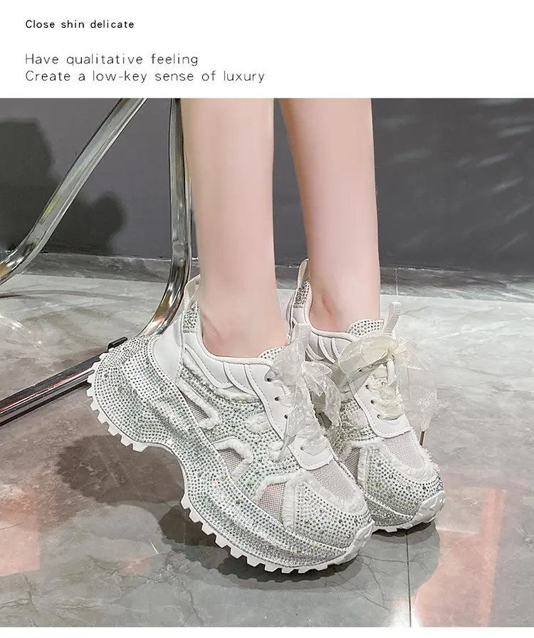 Designer Womens Rhinestone Mesh Shoes Autumn Fashionable Versatile Inner Height Increasing Women Thick-soled Casual Sports Shoes sneakers_platform