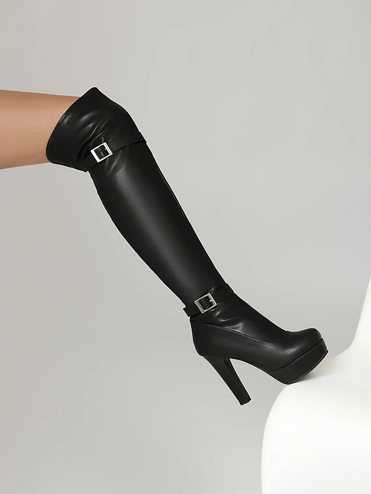 Double Row Metal Belt Buckle Side Zipper Round Toe Platform Ultra-High Thick Heel Over The Knee High Boots New Long Boots boots_platform