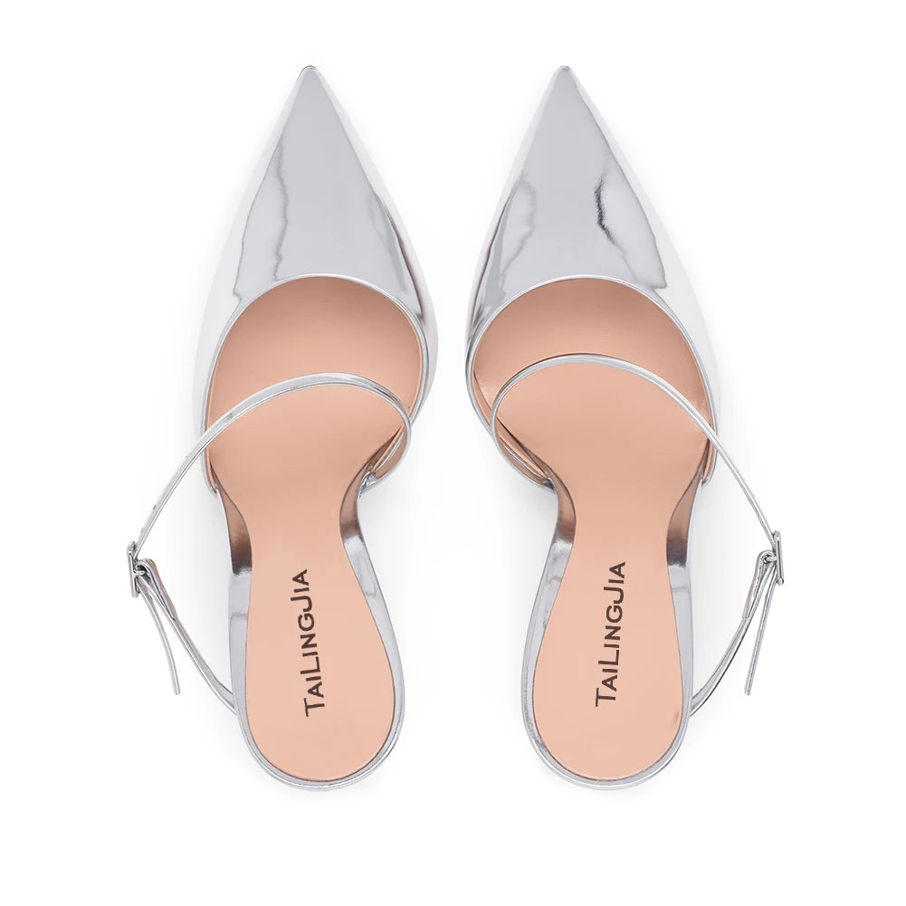 Dress Shoes Women Wedding Heels Ladies Stiletto Sandals Summer Shoes Elegant Silver Patent Leather Pointed Toe High Heel Mules heels_stiletto