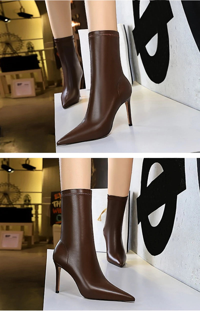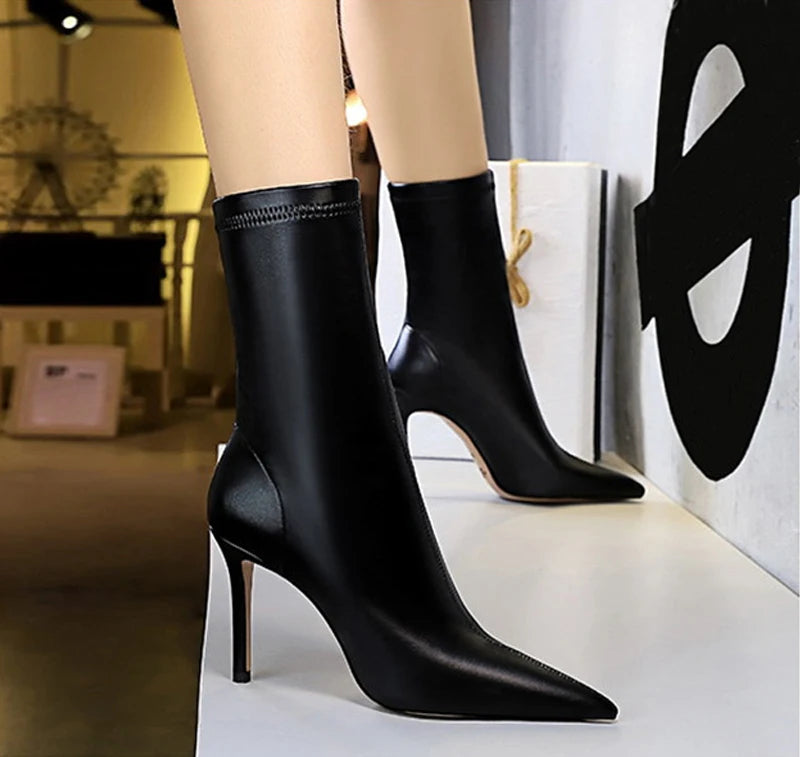 Eilyken Fashion Winter High Quality Soft PU Leather Socks Women Ankle Boots Street Style Pointed Toe Thin Heels Ladies Botines boots_highheel