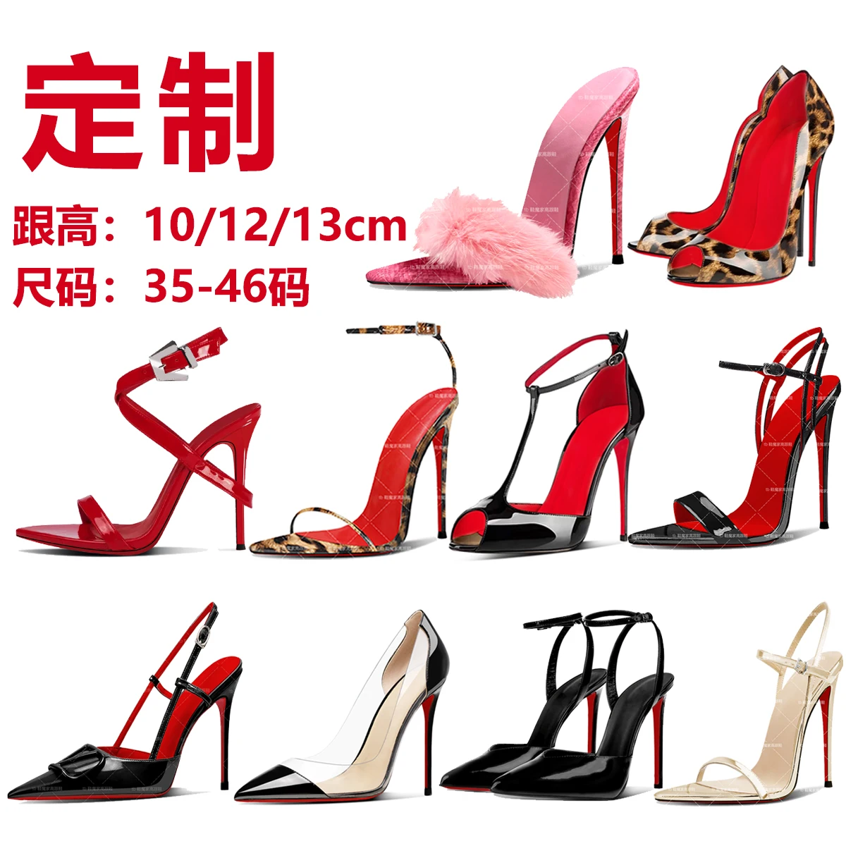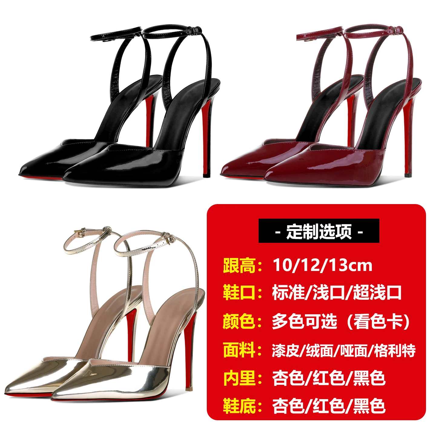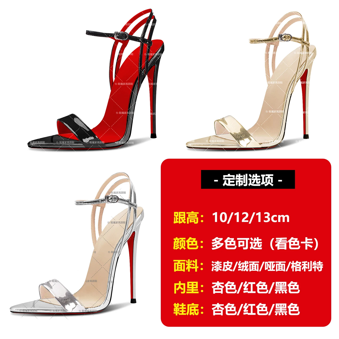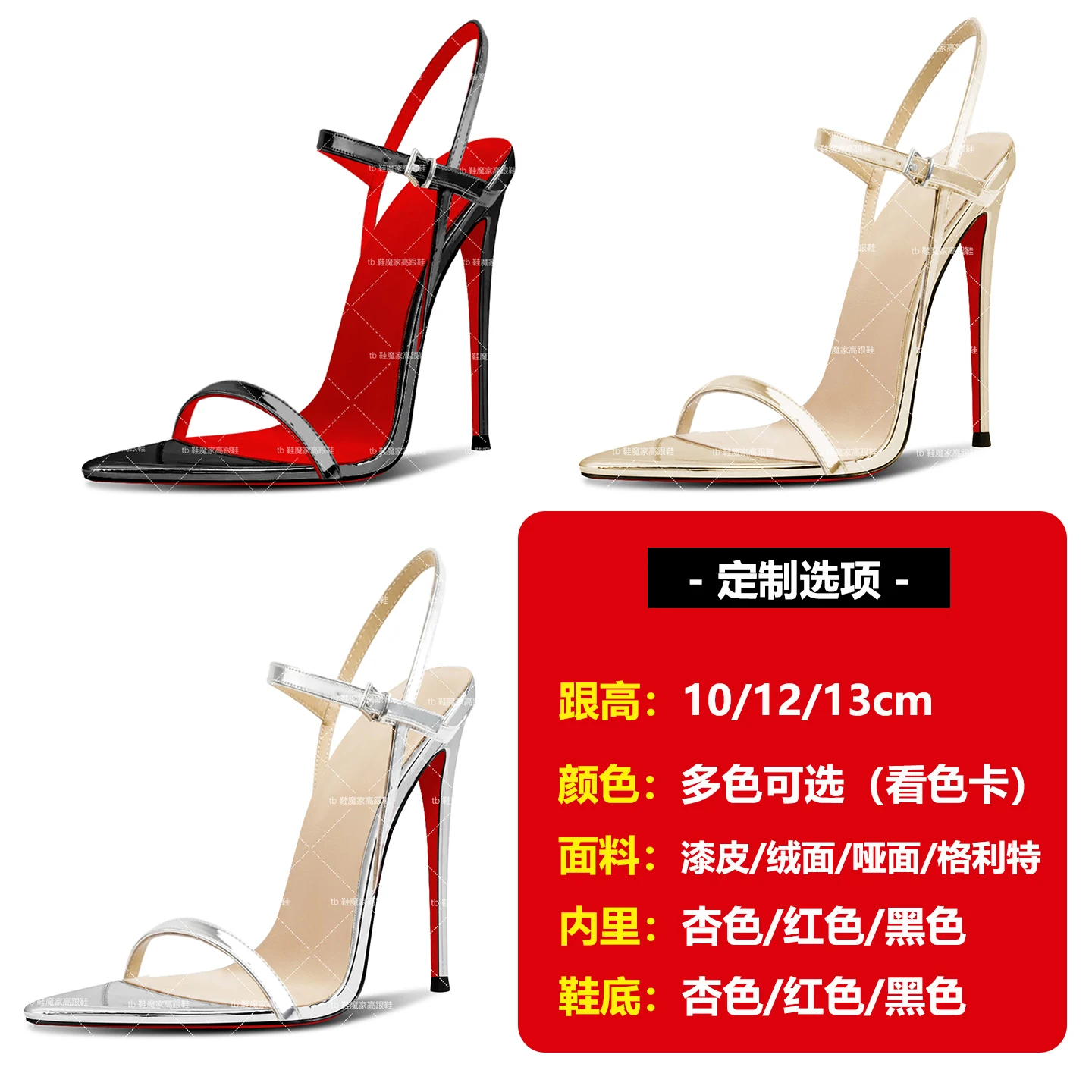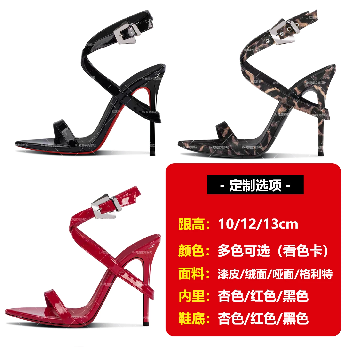 European and American new 12cm pointed thin heel high-heeled shoes with a buckle and exposed toes sexy fashion plus size sandals heels_stiletto