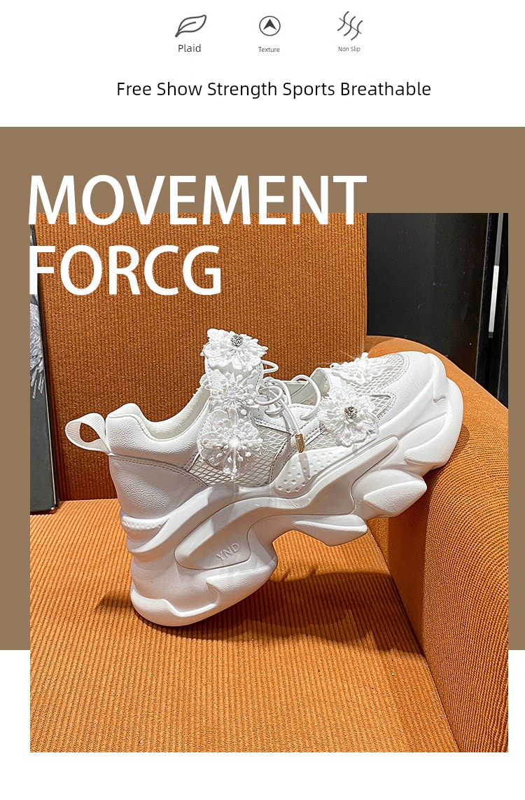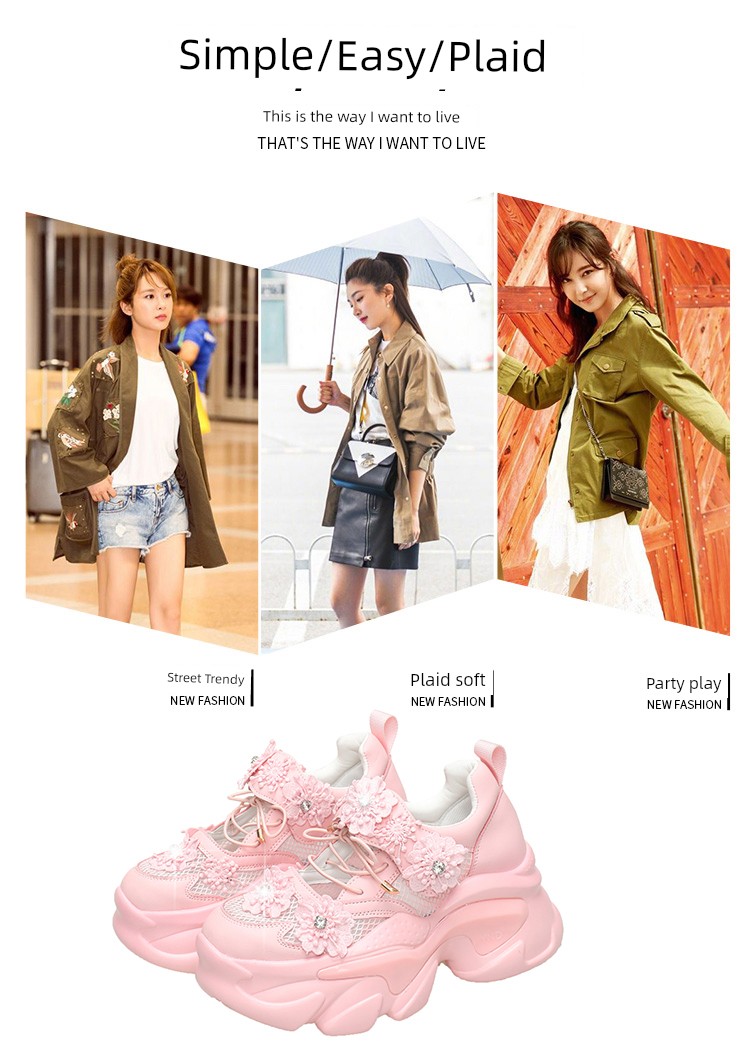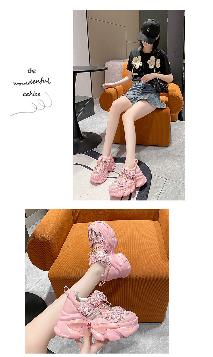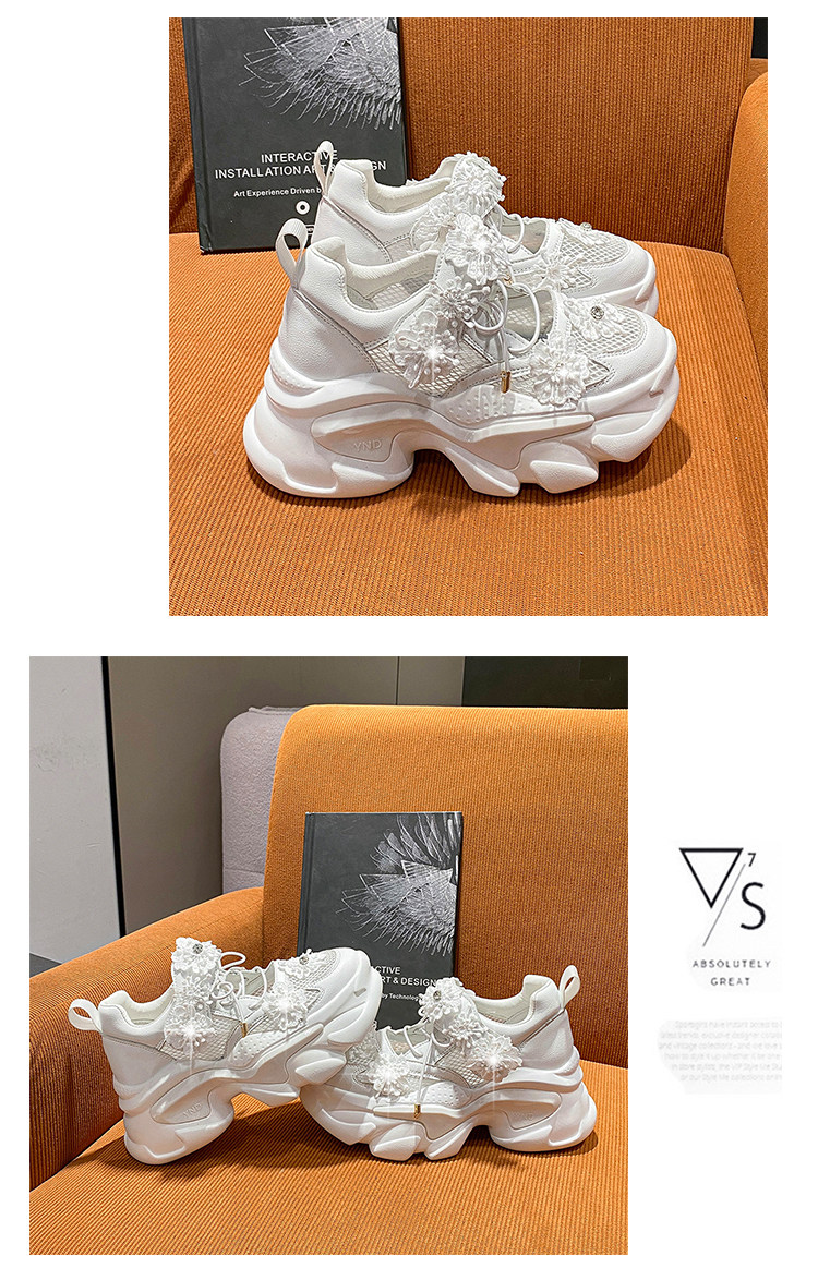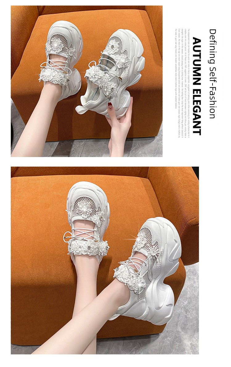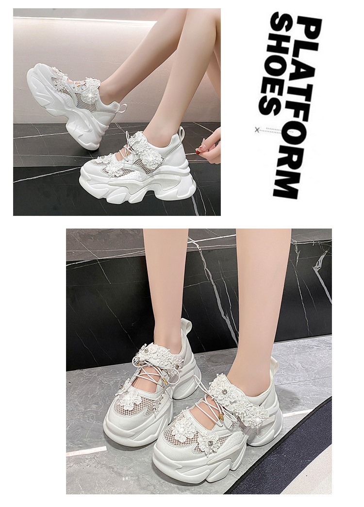 European Station Mesh Breathable Flower Lace Dad Shoes sneakers_platform