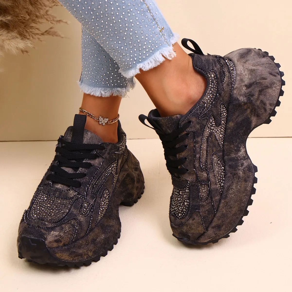 Fall 2025 New Heavy Industry Denim Rhinestone Platform Casual Women's Sneakers sneakers_platform
