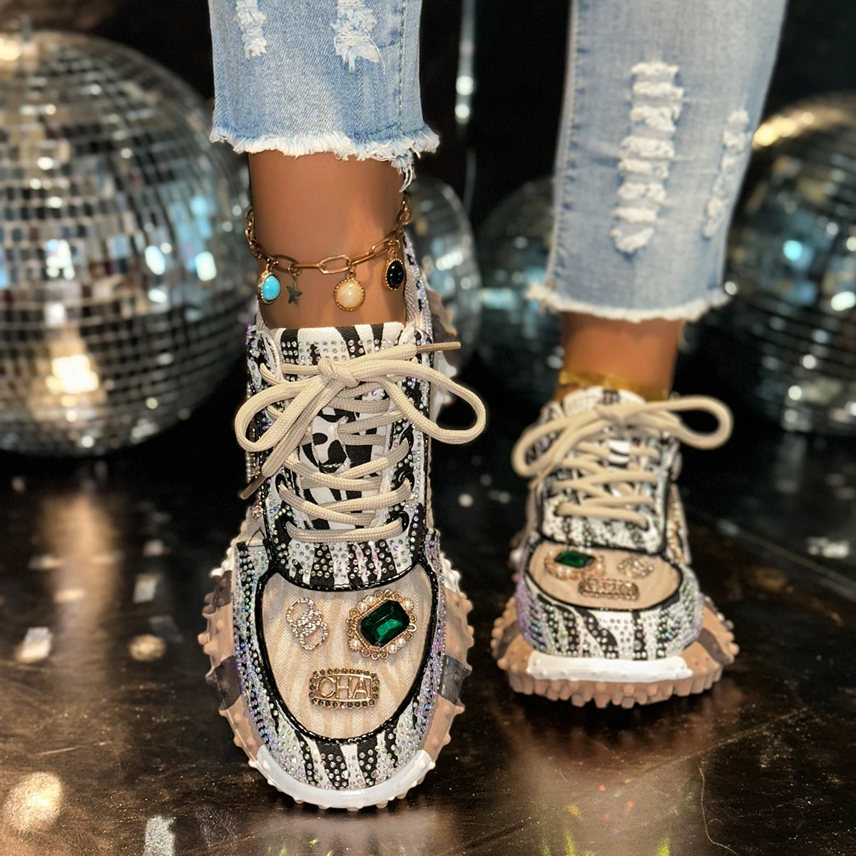 Fashion Casual Shoes Rhinestone Shoes Women Luxury Sneakser Diamond Breathable Designers Casual Platform Non Slip Running Shoes sneakers_platform