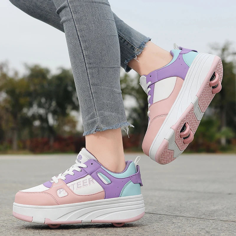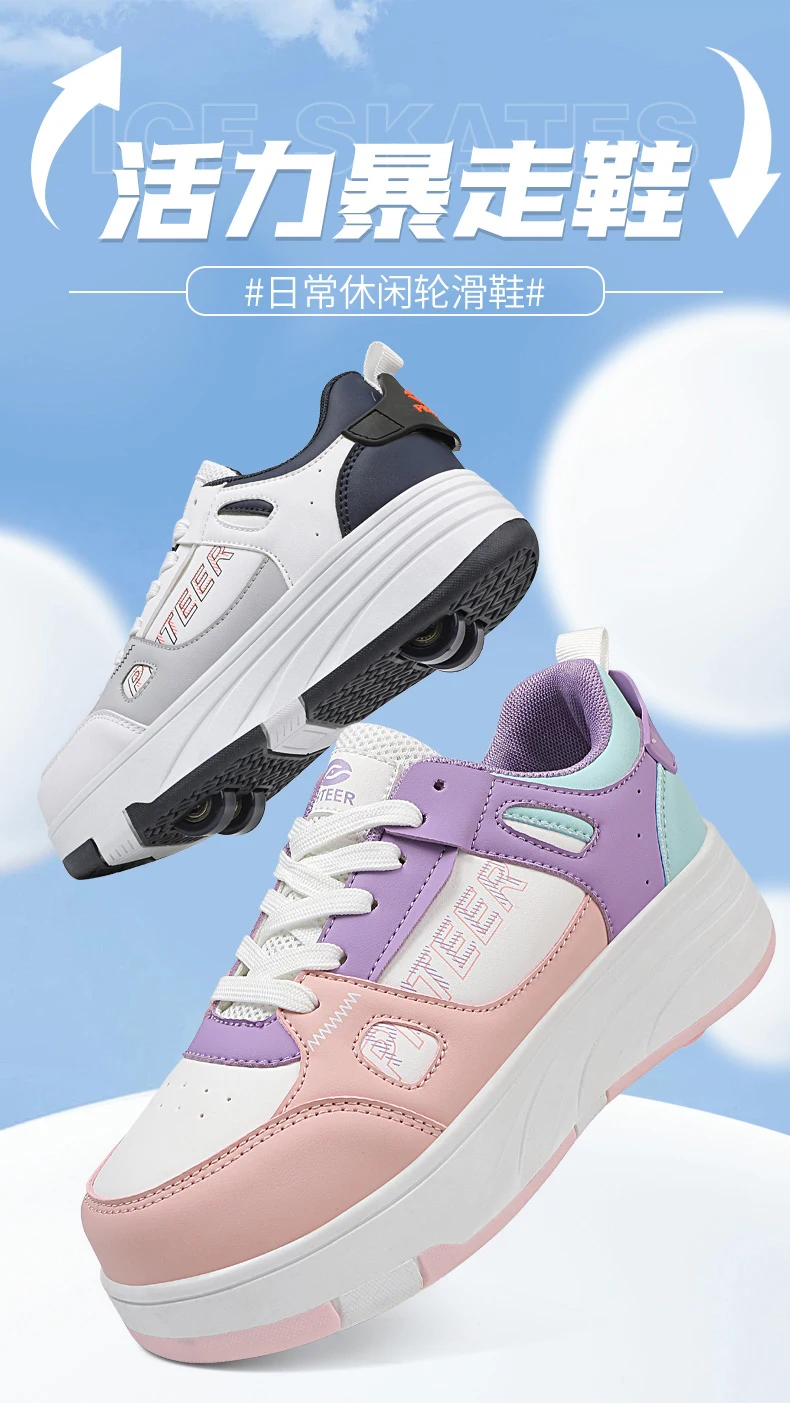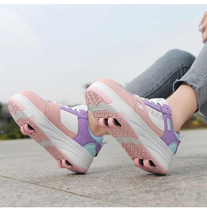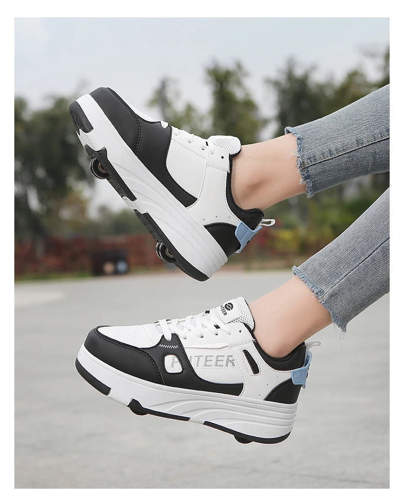 Fashion Double Row 4-Wheel Skates Roller Shoes with Wheels Dual-Purpose Roller Sneakers for children and adults kids_shoes