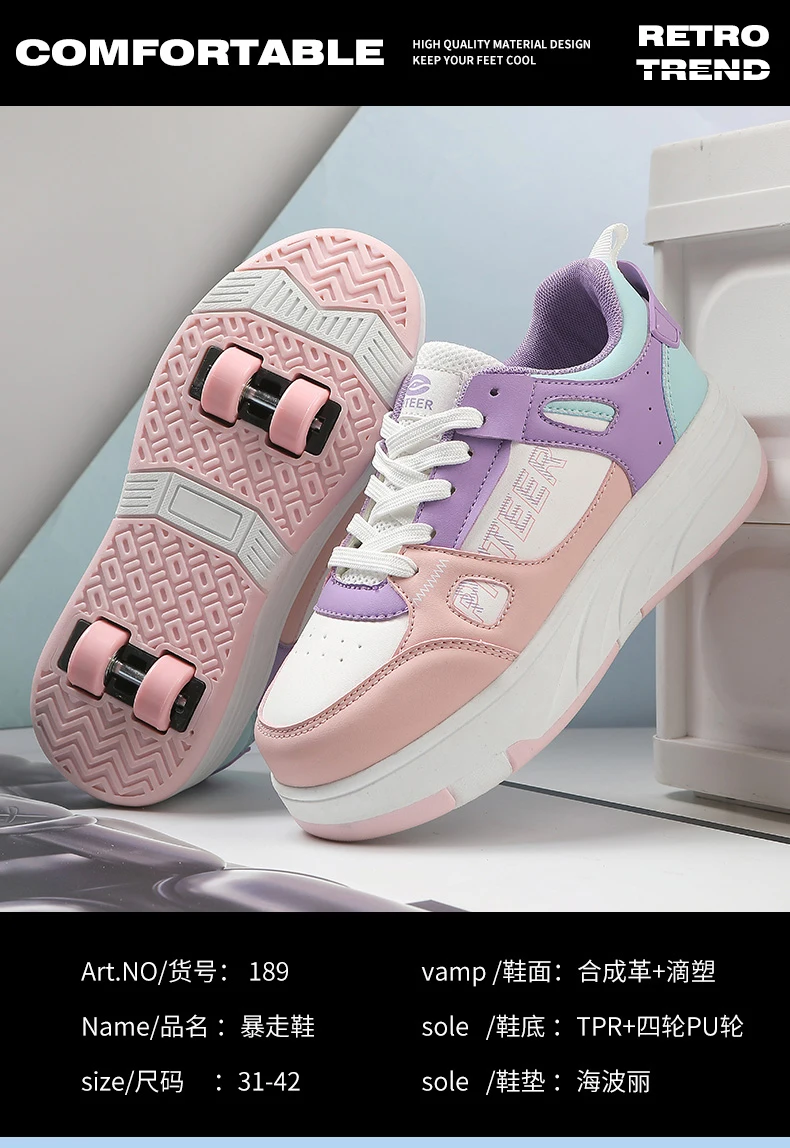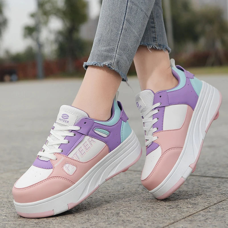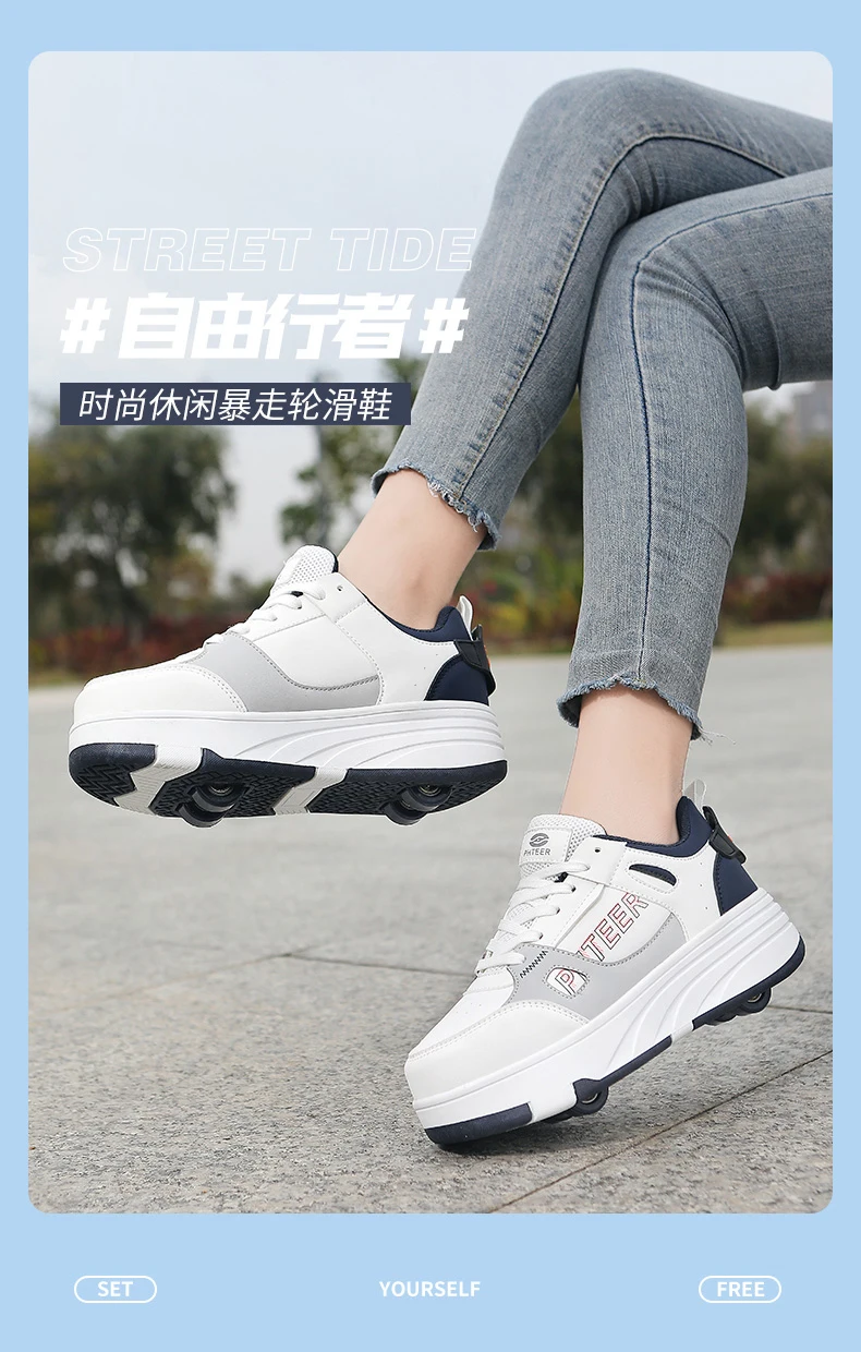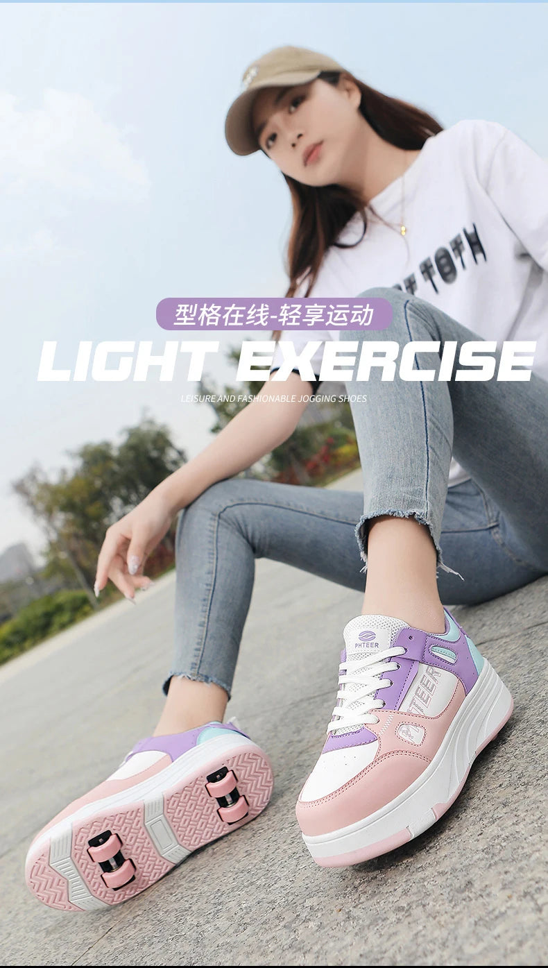 Fashion Double Row 4-Wheel Skates Roller Shoes with Wheels Dual-Purpose Roller Sneakers for children and adults kids_shoes