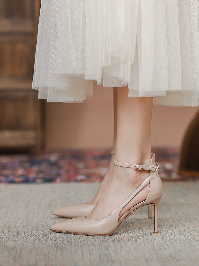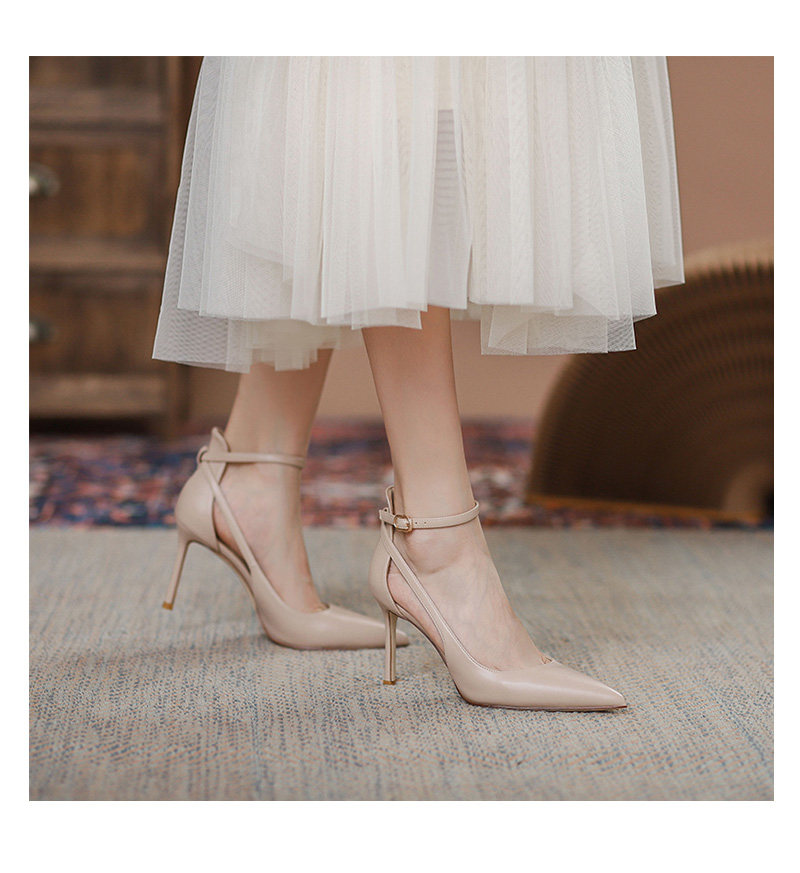 Feiyan Pointed Toe Buckle Strap Stiletto Heel Nude Color Shoes heels_stiletto