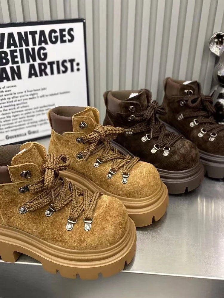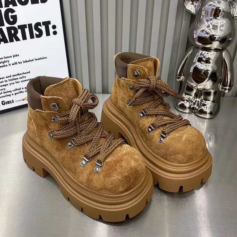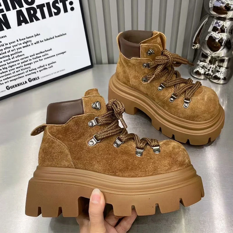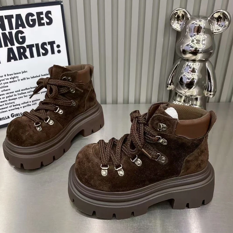 Flats Ankle Boots for Women Platform Designer Shoes Lace Up Fashion Winter Snow Boots 2025 New Suede Cozy Chelsea Botas De Mujer boots_platform