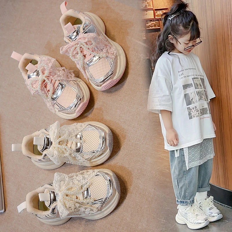 Girls Sports Shoes Spring Autumn Pink Breathable Girls Casual Shoes 3-18 Years Old Beige Soft Non-slip Children's Single Shoes kids_shoes