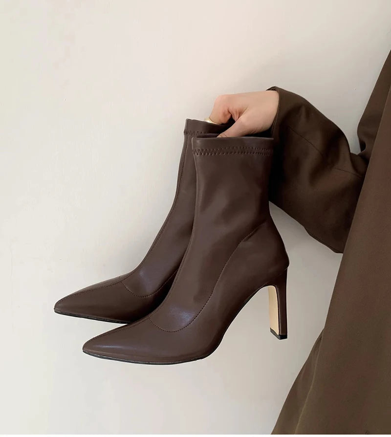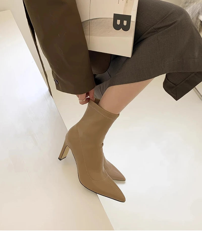 High Heel Women Slim Ankle Boots Fashion Elegant Pointed Toe Short Booties Spring Autumn Laides Street Style Shoes boots_highheel