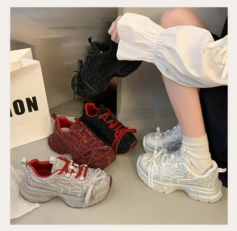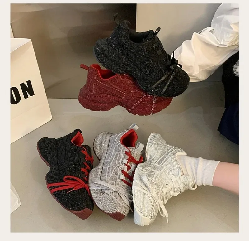 High Quality Luxury Designer Shoes for Women Women Sneakers Rhinestone Women Loafers Fashion Shiny Women's Casual Platform Shoes sneakers_platform