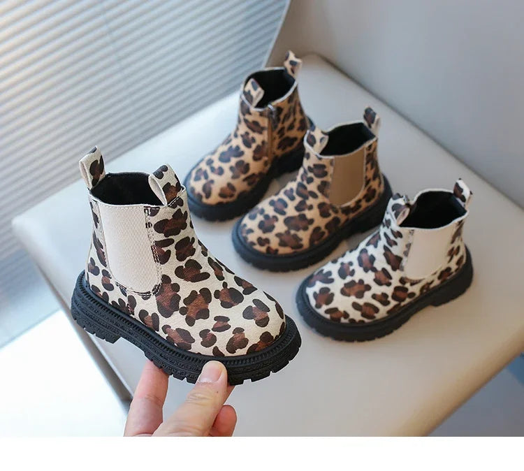 Kids Boots Leopard Prints Classic Little Boys Ankle Boots Side Zipper Fashion Classic Unisex Girls Rubber Boots Breathable Warm kids_shoes