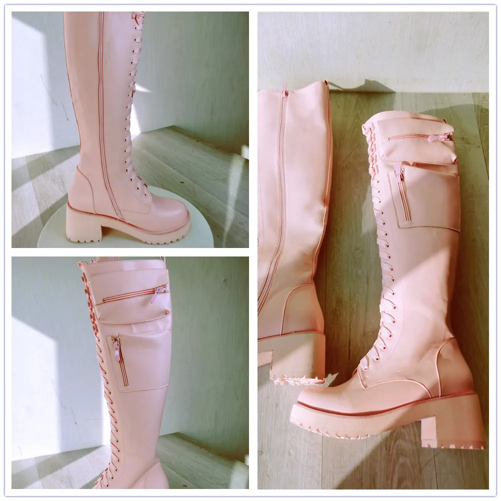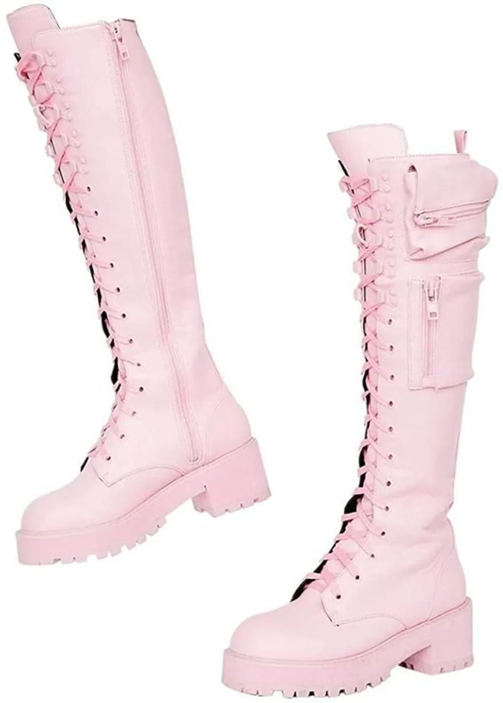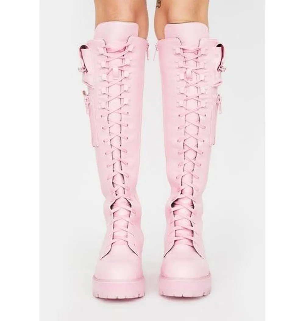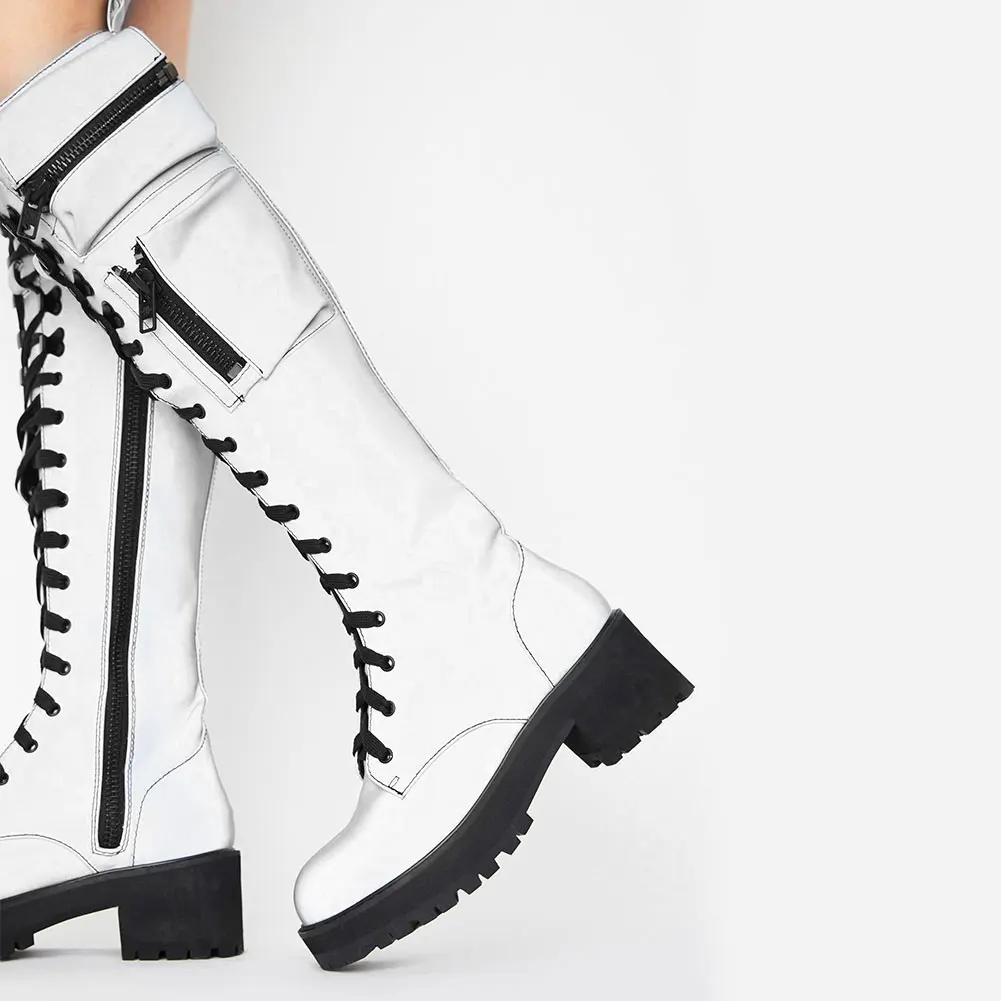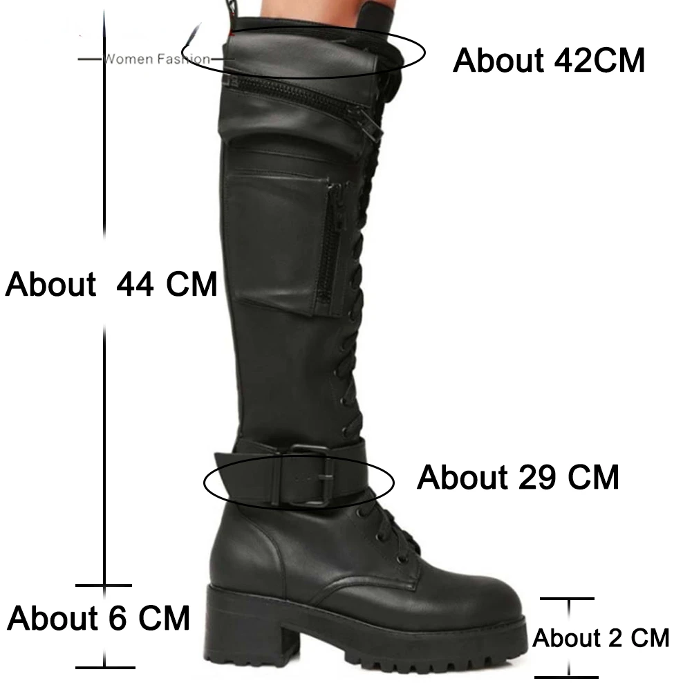 Knee High Boots Women Cool Goth Zipper Design Pocket Lace Up Chunky Heel High Quality Shoes Woman Fashion Popualr Big Size 35-43 boots_platform