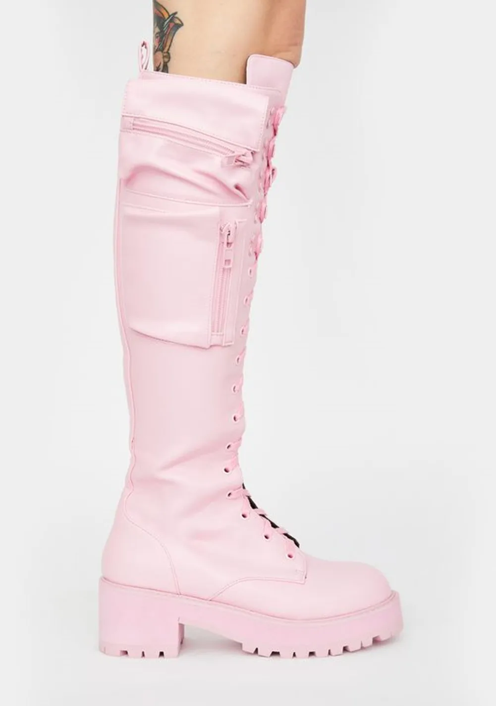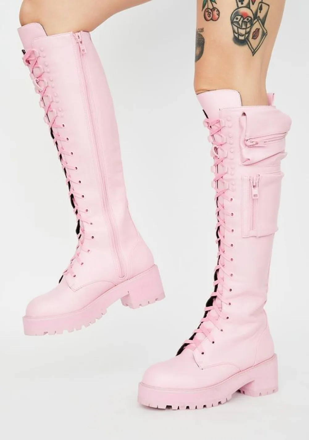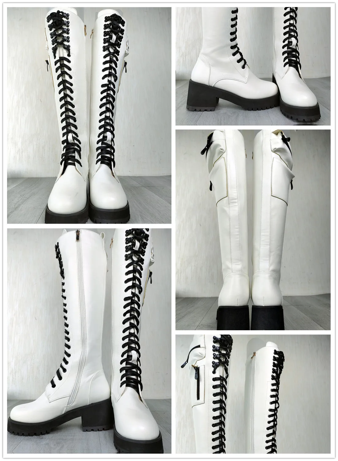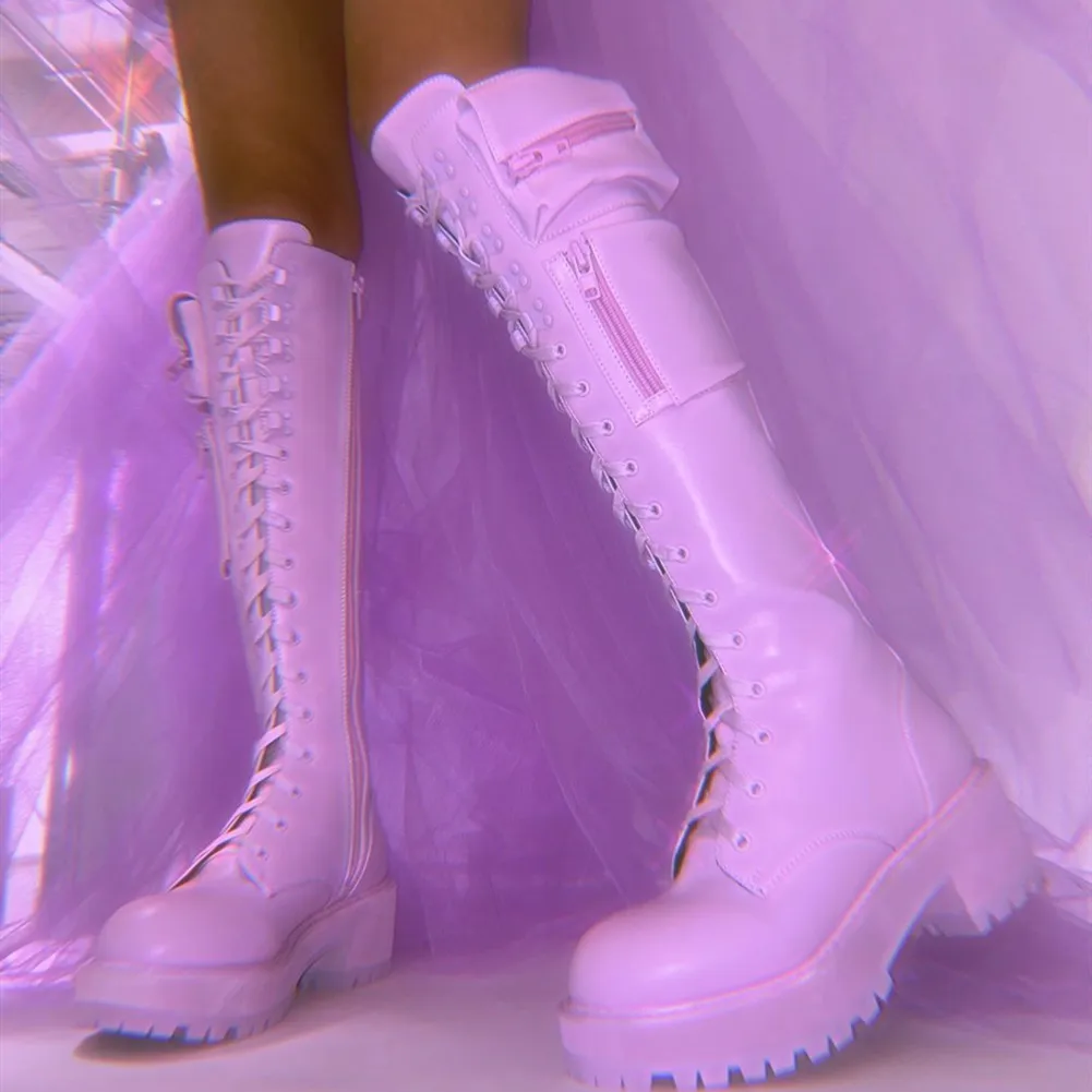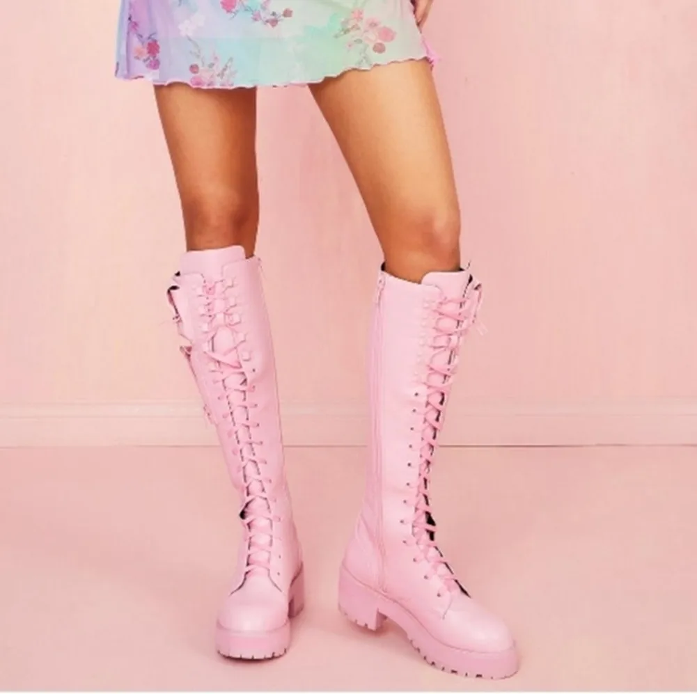 Knee High Boots Women Cool Goth Zipper Design Pocket Lace Up Chunky Heel High Quality Shoes Woman Fashion Popualr Big Size 35-43 boots_platform