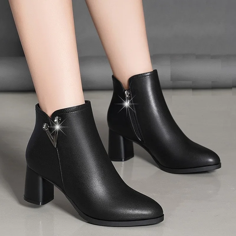 Ladies Shoes 2026 Ankle Women's Boots Retro Modern Boots Women Crystal Pointed Toe Med Heel Side Zip Shoes Female Zapatos Mujer boots_highheel