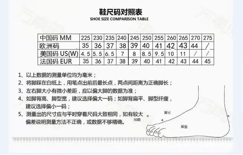 size_info: {"sizeInfoList":[{"length":{"cm":"22.5","inch":"8.86"},"size":"35","vid":-1},{"length":{"cm":"23","inch":"9.06"},"size":"36","vid":-2},{"length":{"cm":"23.5","inch":"9.25"},"size":"37","vid":-3},{"length":{"cm":"24","inch":"9.45"},"size":"38","vid":-4},{"length":{"cm":"24.5","inch":"9.65"},"size":"39","vid":-5},{"length":{"cm":"25","inch":"9.84"},"size":"40","vid":-6},{"length":{"cm":"25.5","inch":"10.04"},"size":"41","vid":-7},{"length":{"cm":"26","inch":"10.24"},"size":"42","vid":-8},{"length":{"cm":"26.5","inch":"10.43"},"size":"43","vid":-9},{"length":{"cm":"27","inch":"10.63"},"size":"44","vid":-10},{"length":{"cm":"27.5","inch":"10.83"},"size":"45","vid":-11},{"length":{"cm":"28","inch":"11.02"},"size":"46","vid":-12},{"length":{"cm":"28.5","inch":"11.22"},"size":"47","vid":-13},{"length":{"cm":"29","inch":"11.42"},"size":"48","vid":-14},{"length":{"cm":"29.5","inch":"11.61"},"size":"49","vid":-15},{"length":{"cm":"30","inch":"11.81"},"size":"50","vid":-16}]}