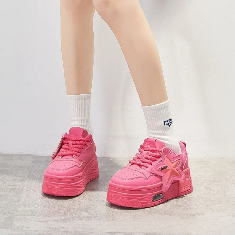 Leather Pink Chunky Sneakers Platform Lace-up Thick Sole Casual Shoes Women 2025 Slip on Fashion Outdoors Walking Shoes sneakers_platform