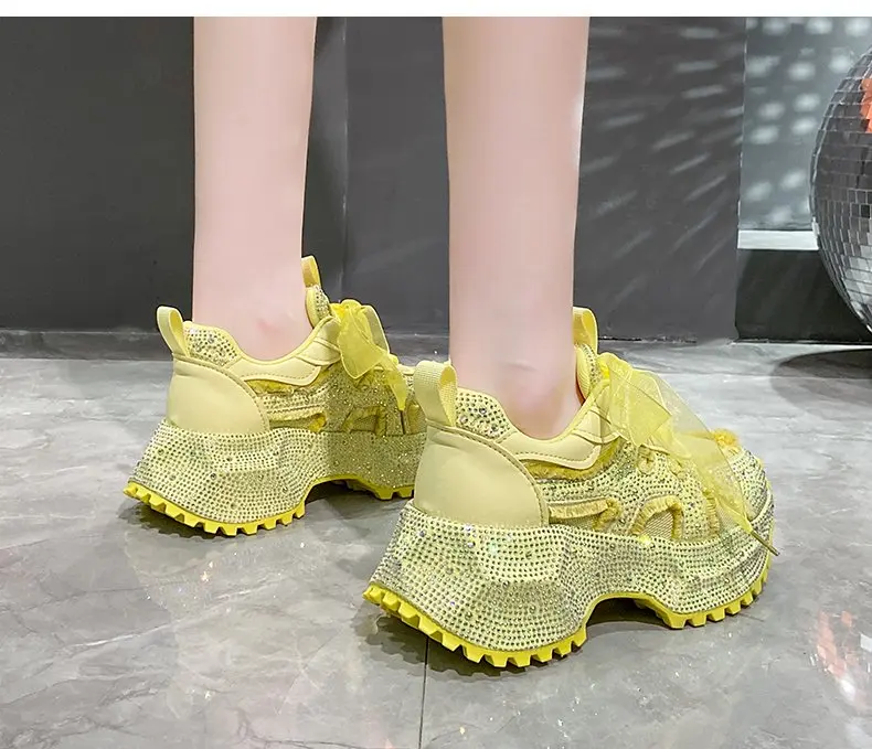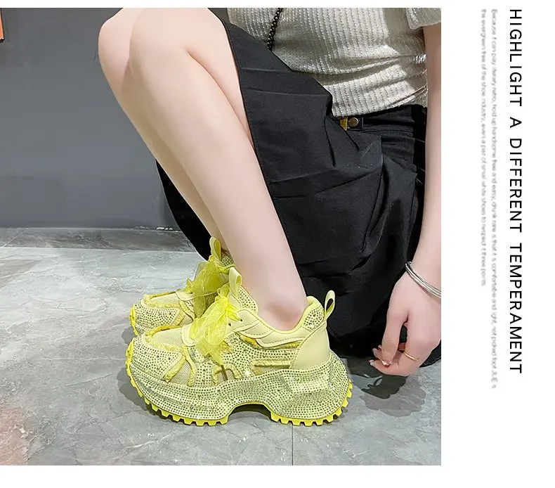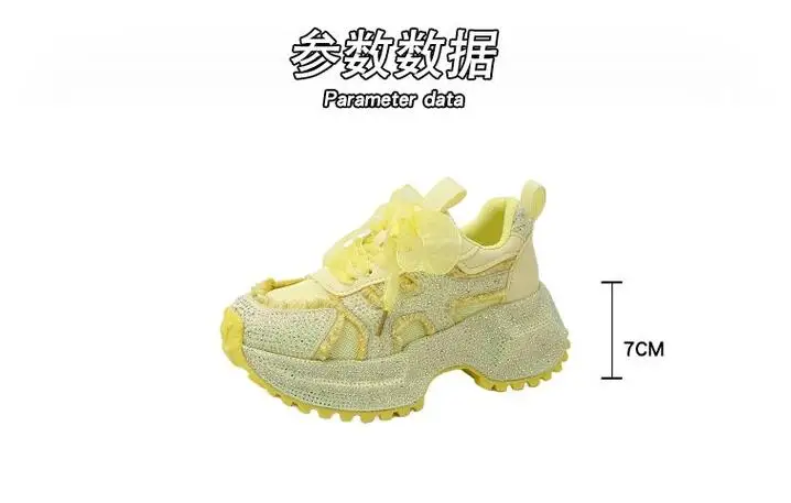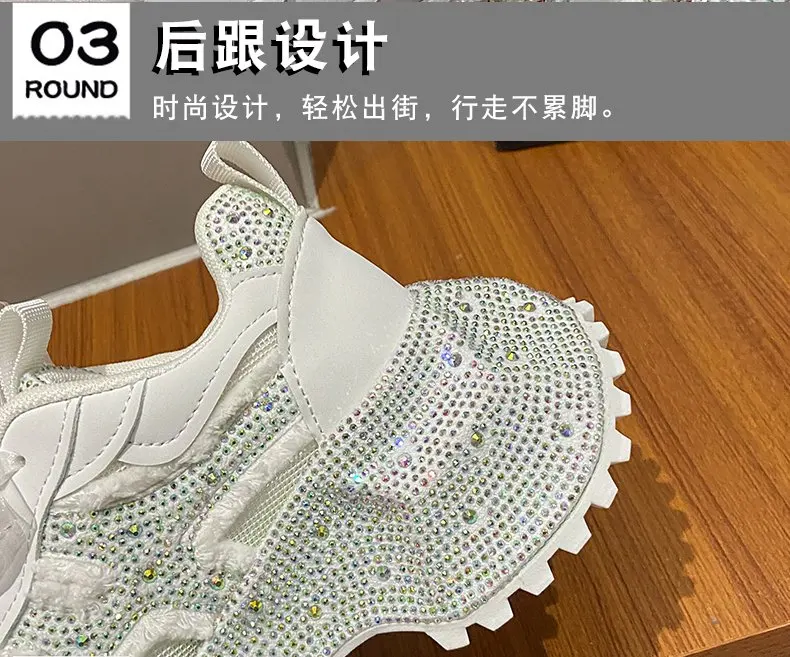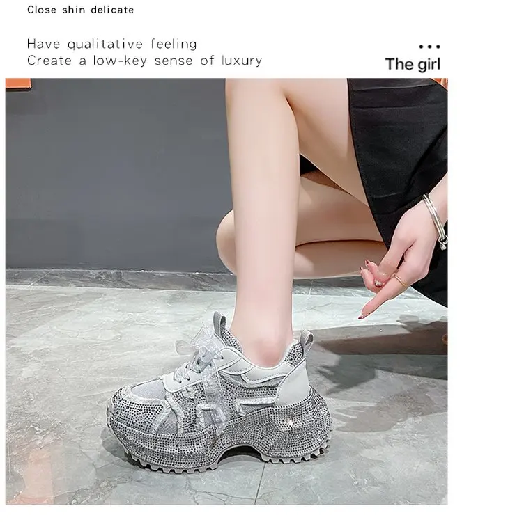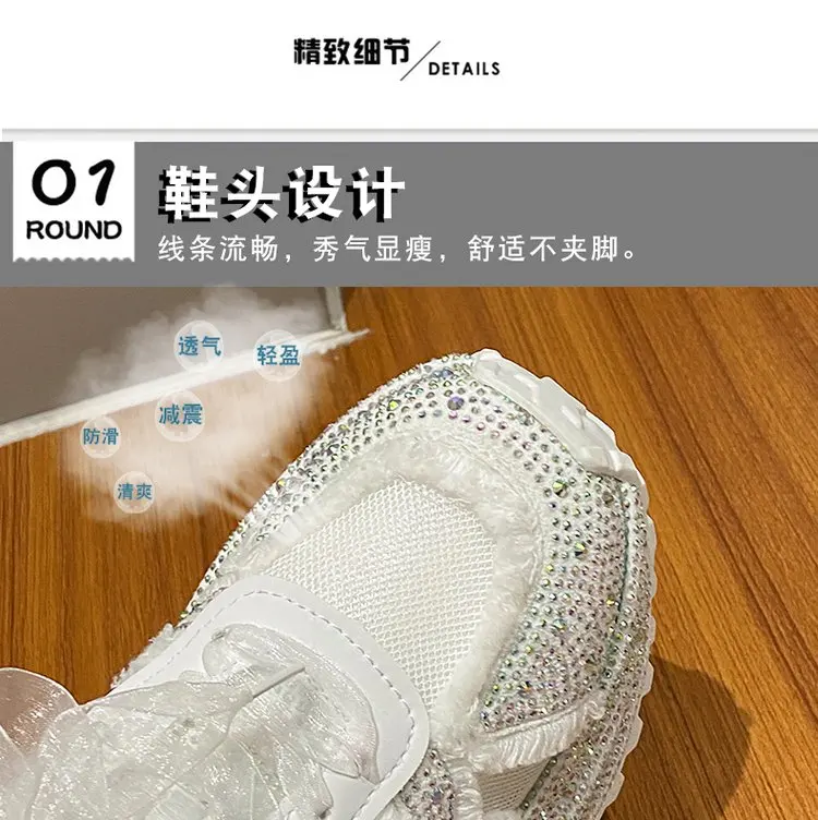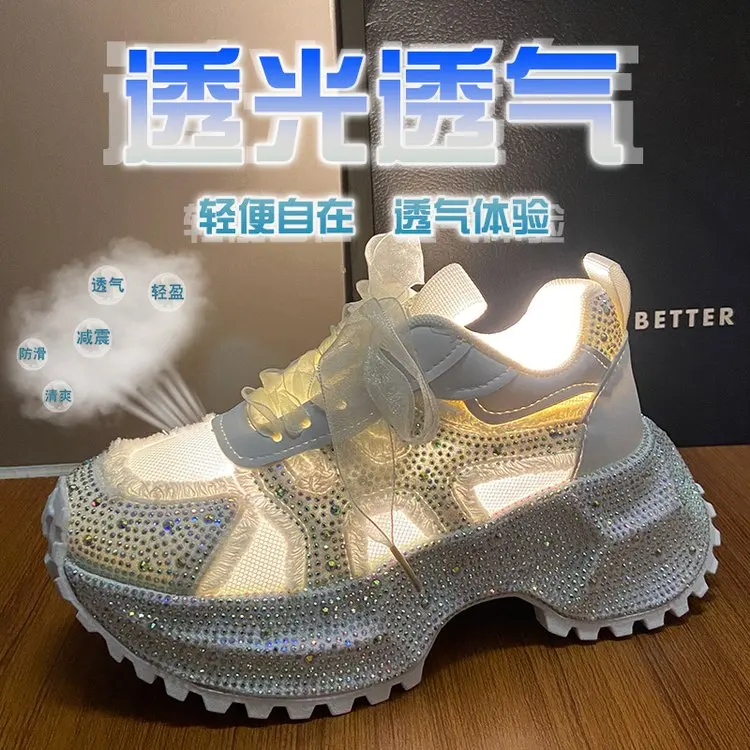 Luxury Women's Rhinestone Mesh Shoes Autumn Fashionable Versatile Inner Height Increasing Women Thick-soled Casual Sports Shoes sneakers_platform sneakers_luxury