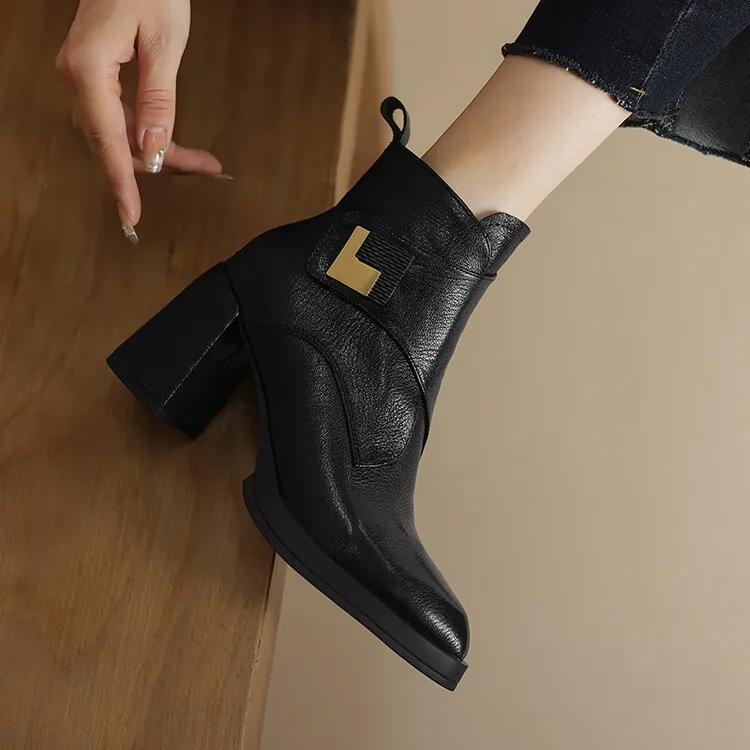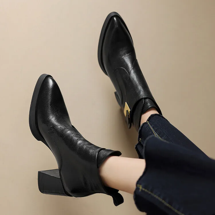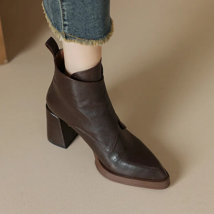 NEW Autumn/Winter Women Boots Genuine Leather Shoes for Women Pointed Toe Chunky Heel Shoe High Heel Modern Boots Platform Shoes boots_platform