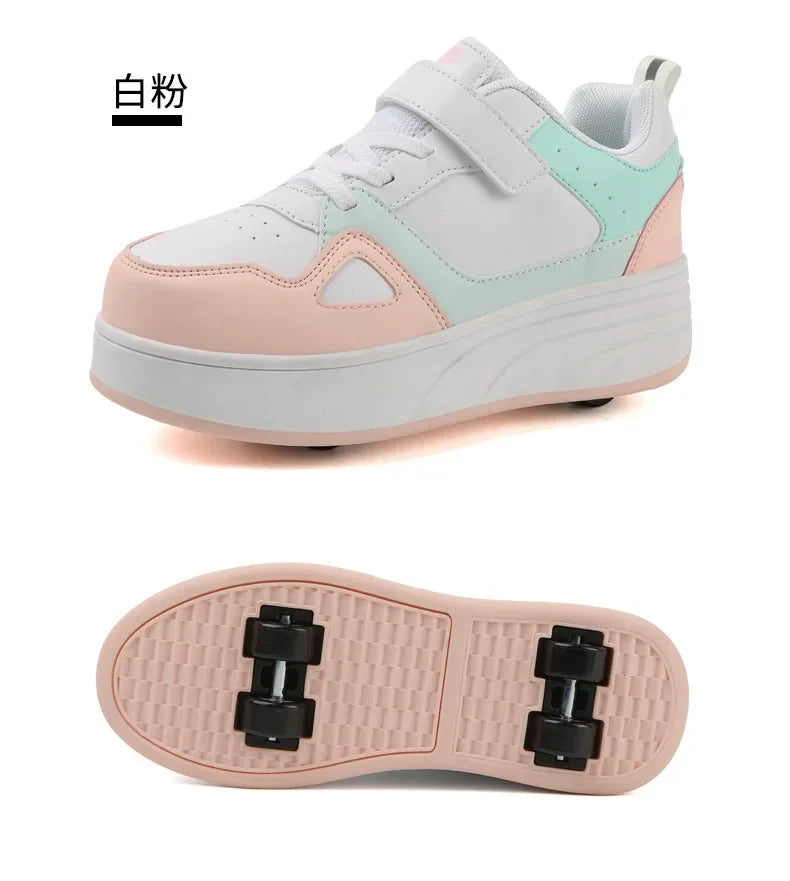 New Four Wheels Women & Girls PU Leather Children Roller Shoes Fashion Boys Sneakers Breathable Kids Skates Size 30-40 kids_shoes